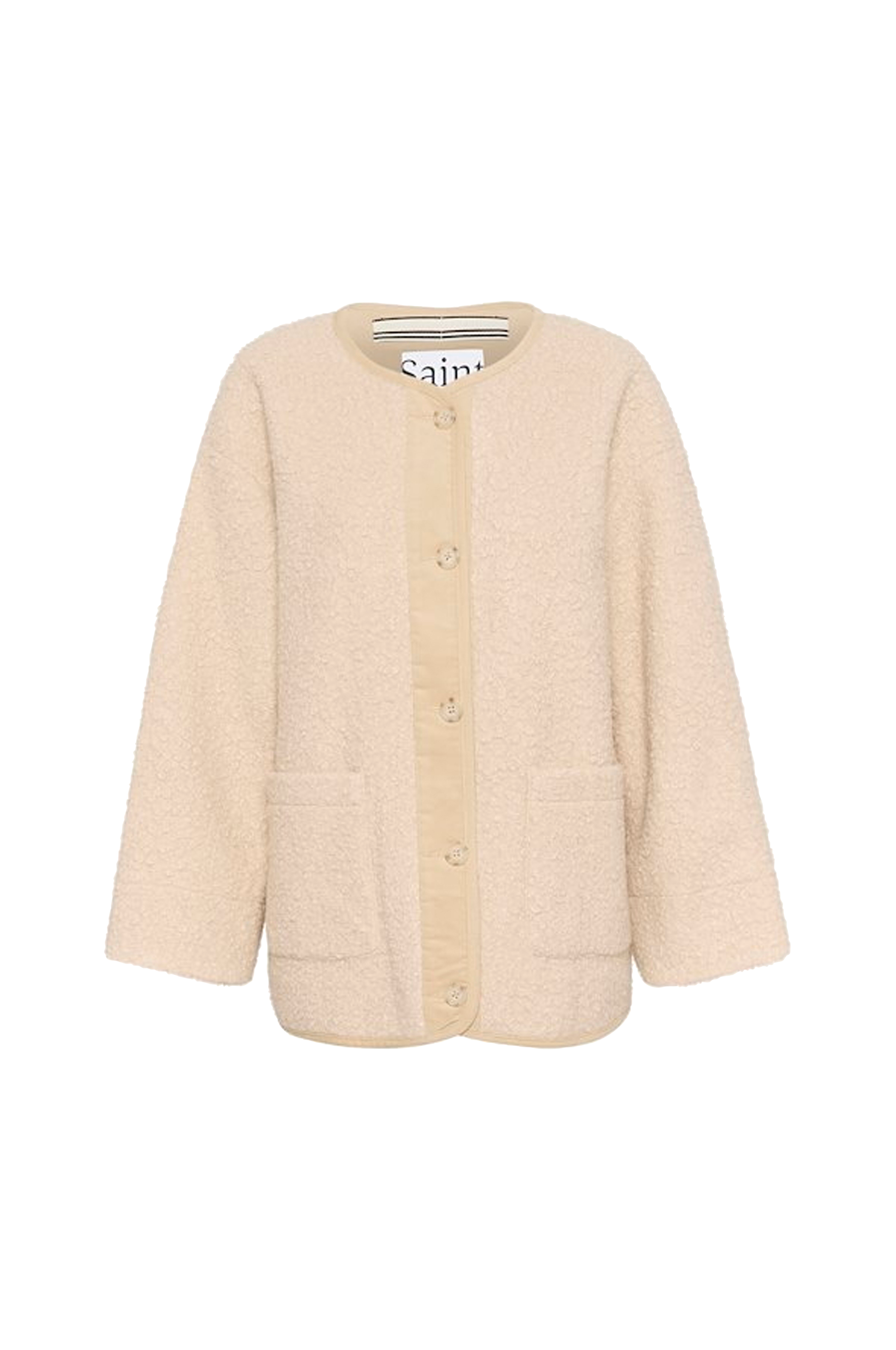• Jakke i blød polyester med tekstur• Oversize model• Knapstolpe foran med dekorative, store knapper• Afslappet, firkantet pasform• Afrundet halsudskæring• To praktiske lommer ved fronten• Lange arme med nedsænkede skuldre