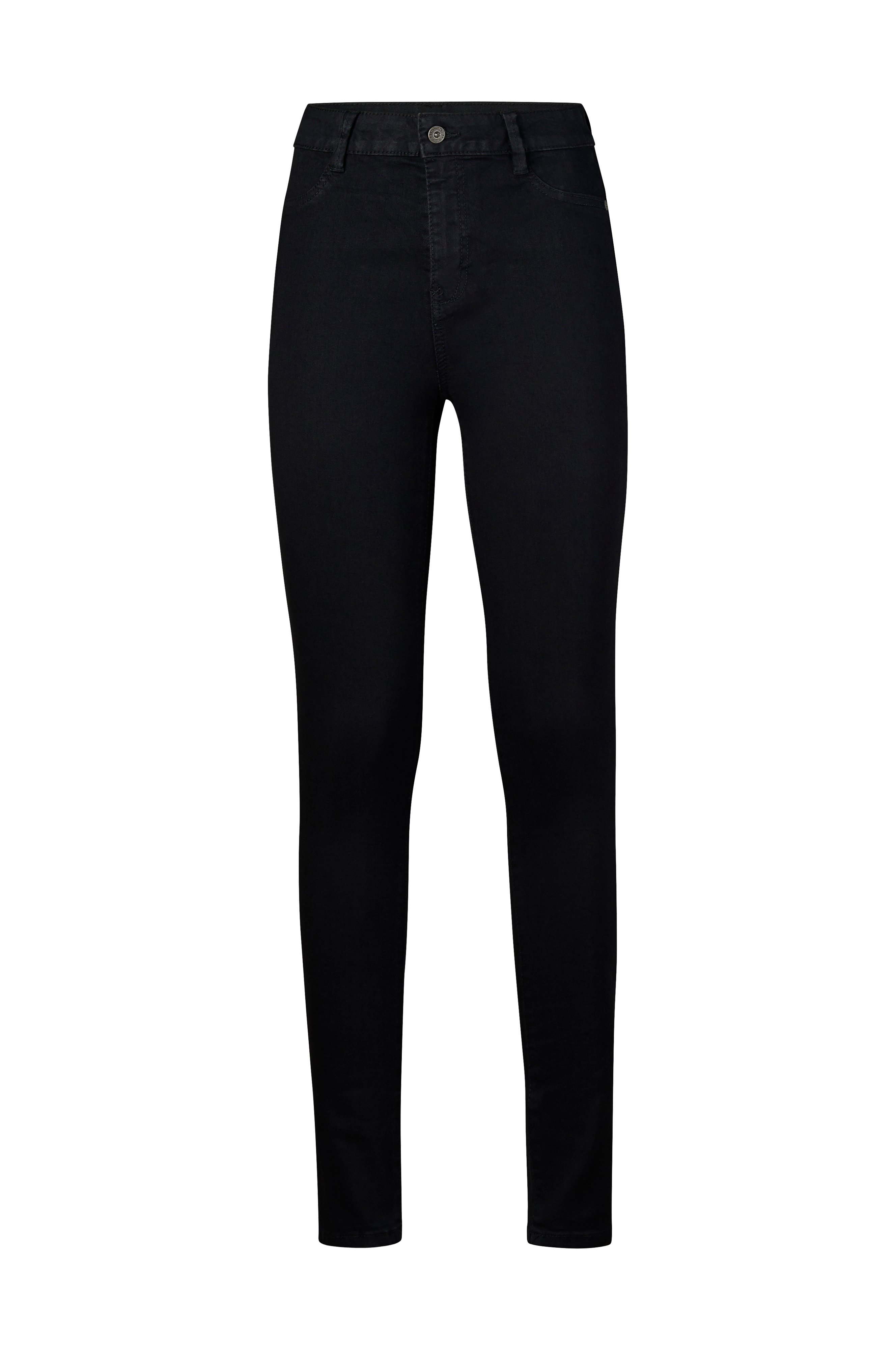Jeans Stretchy Highwaist fra Saint Tropez. Smal model med høj talje og pyntestukne snydelommer foran. To påsyede baglommer og smalle ben samt smal benkant. Benlængde ca. 78 cm i str. S. Fodvidde ca. 26 cm.