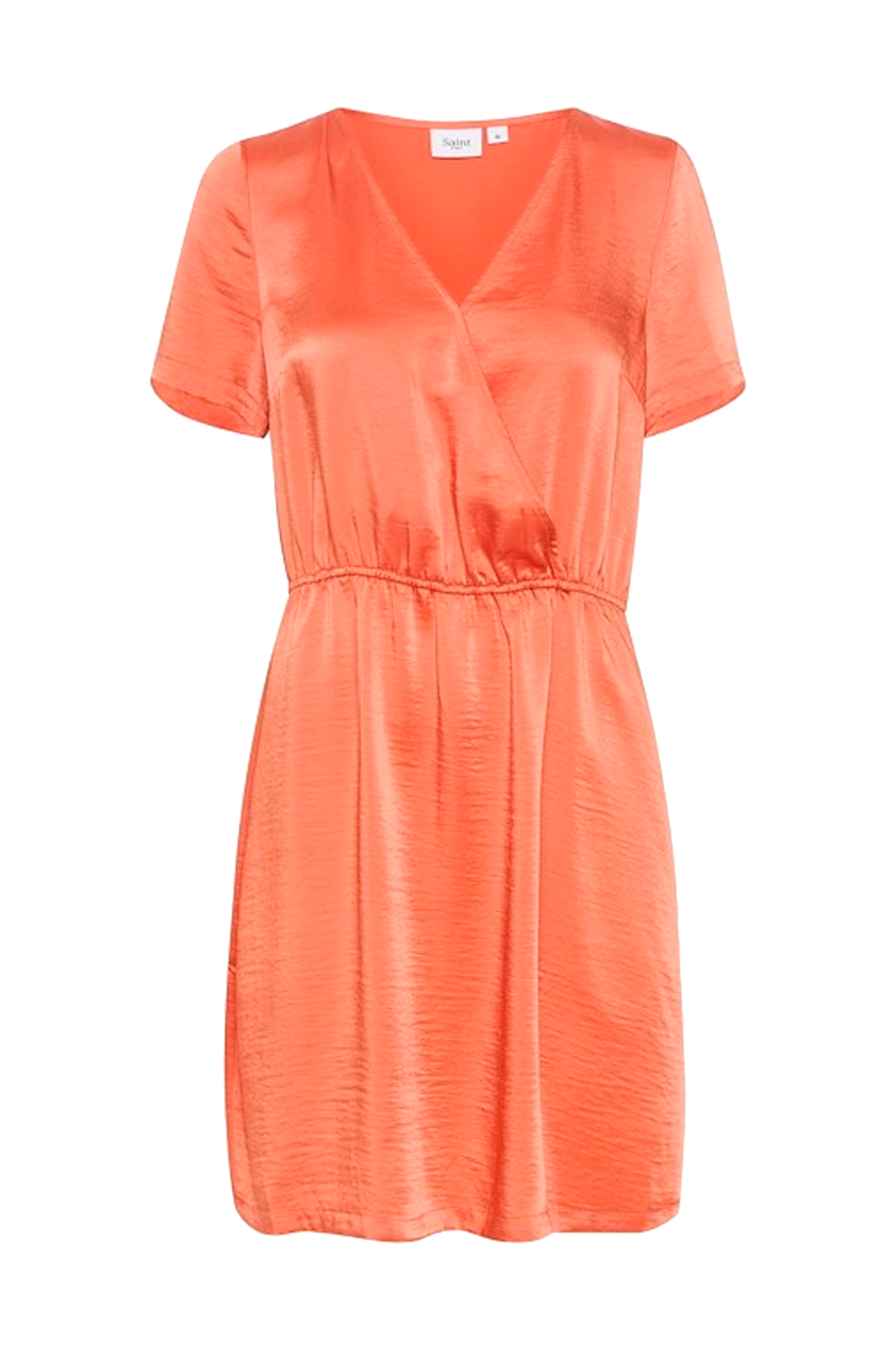 • Kjole i satin• V-udskæring med slå-om• Korte ærmer• Elastisk talje• Længde: 93 cm i størrelse S