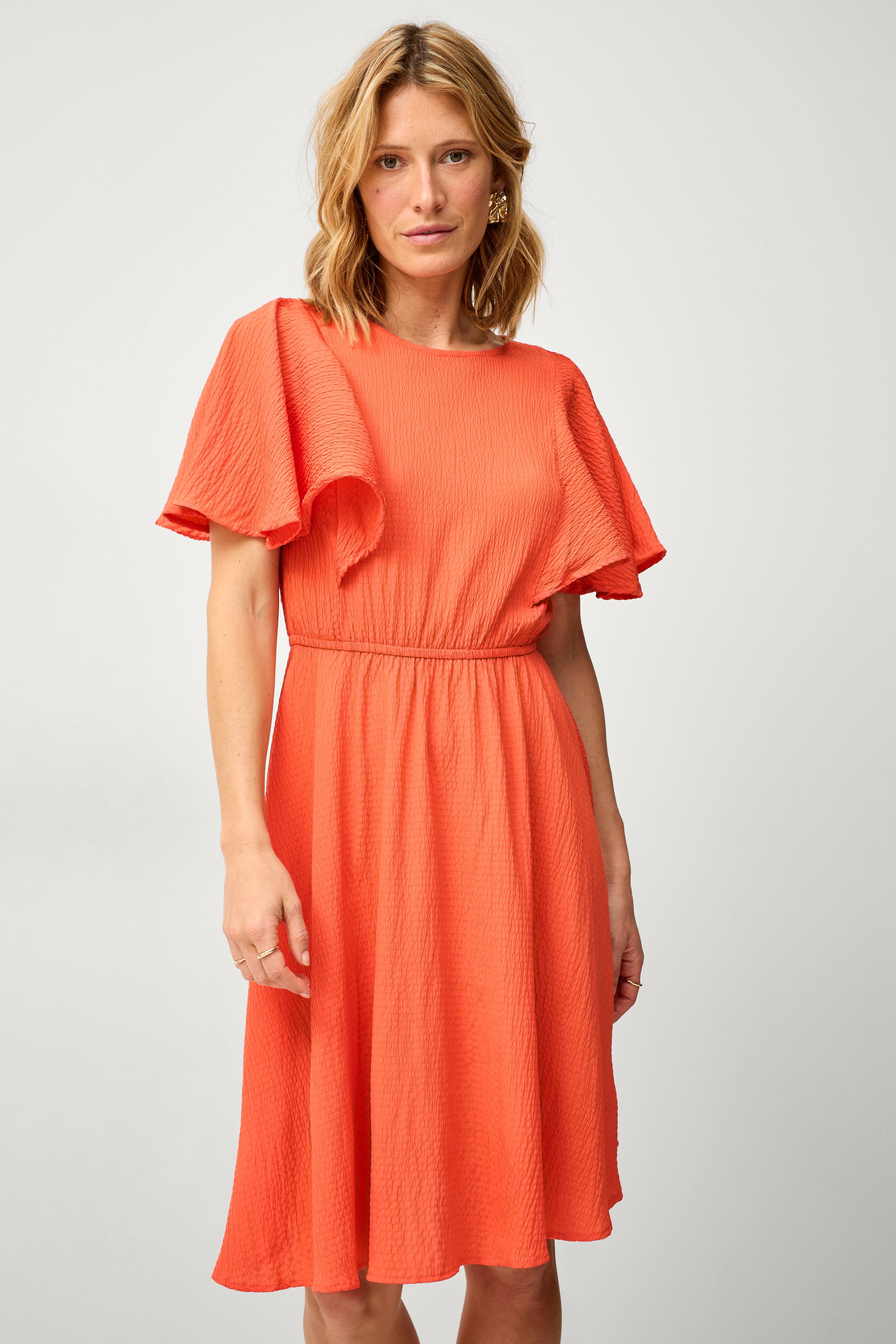 • Model med svaj• Elastisk talje• Brede flagrende ærmer• Behandlet materiale• Længde: 101 cm i størrelse S