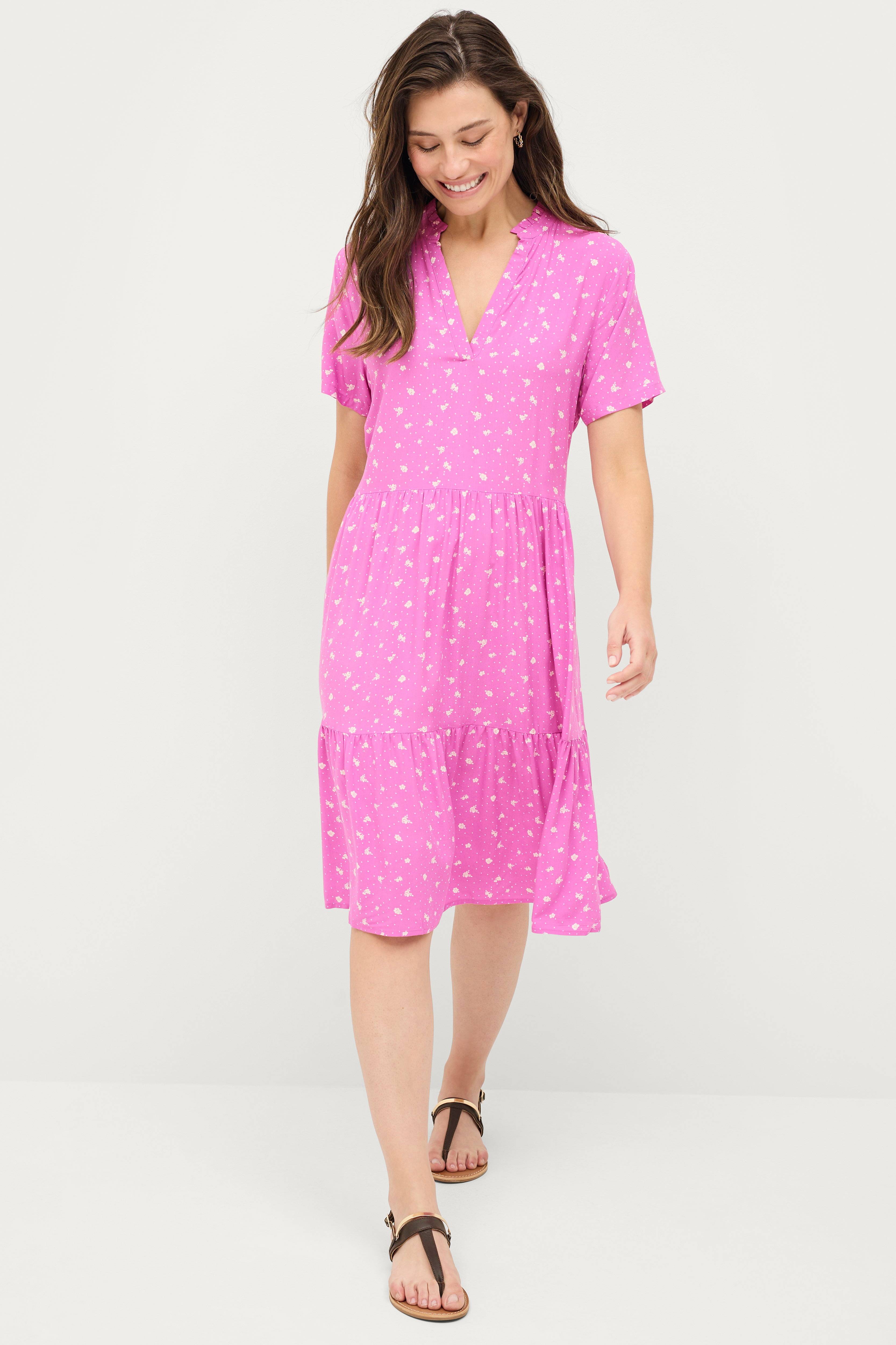 • Rund hals med lille volant og v-udskæring foran
