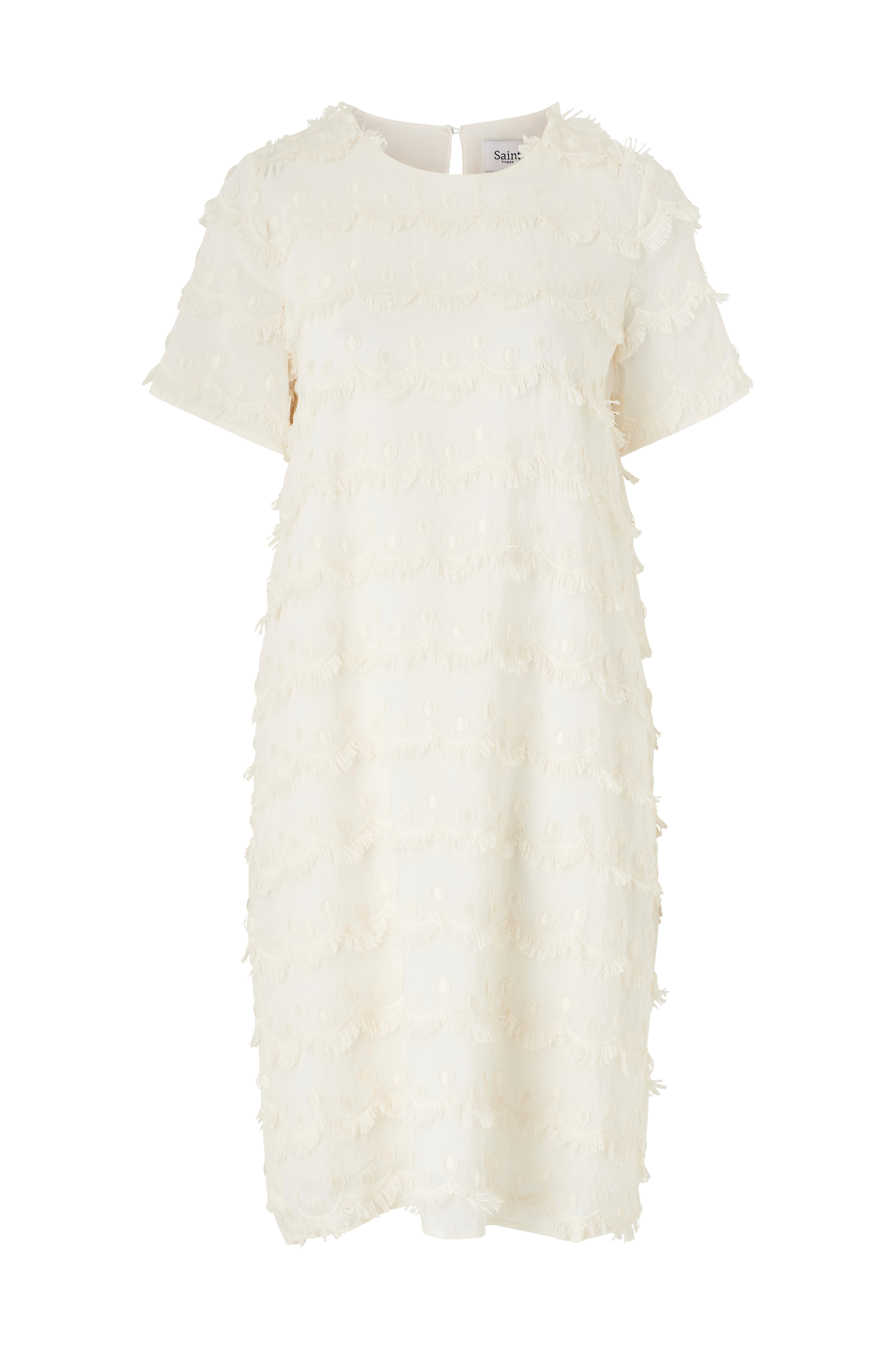 • Model med broderede applikationer overalt• Rund hals med knap i nakken• Kort ærme• Foret• Længde: 101 cm i størrelse S