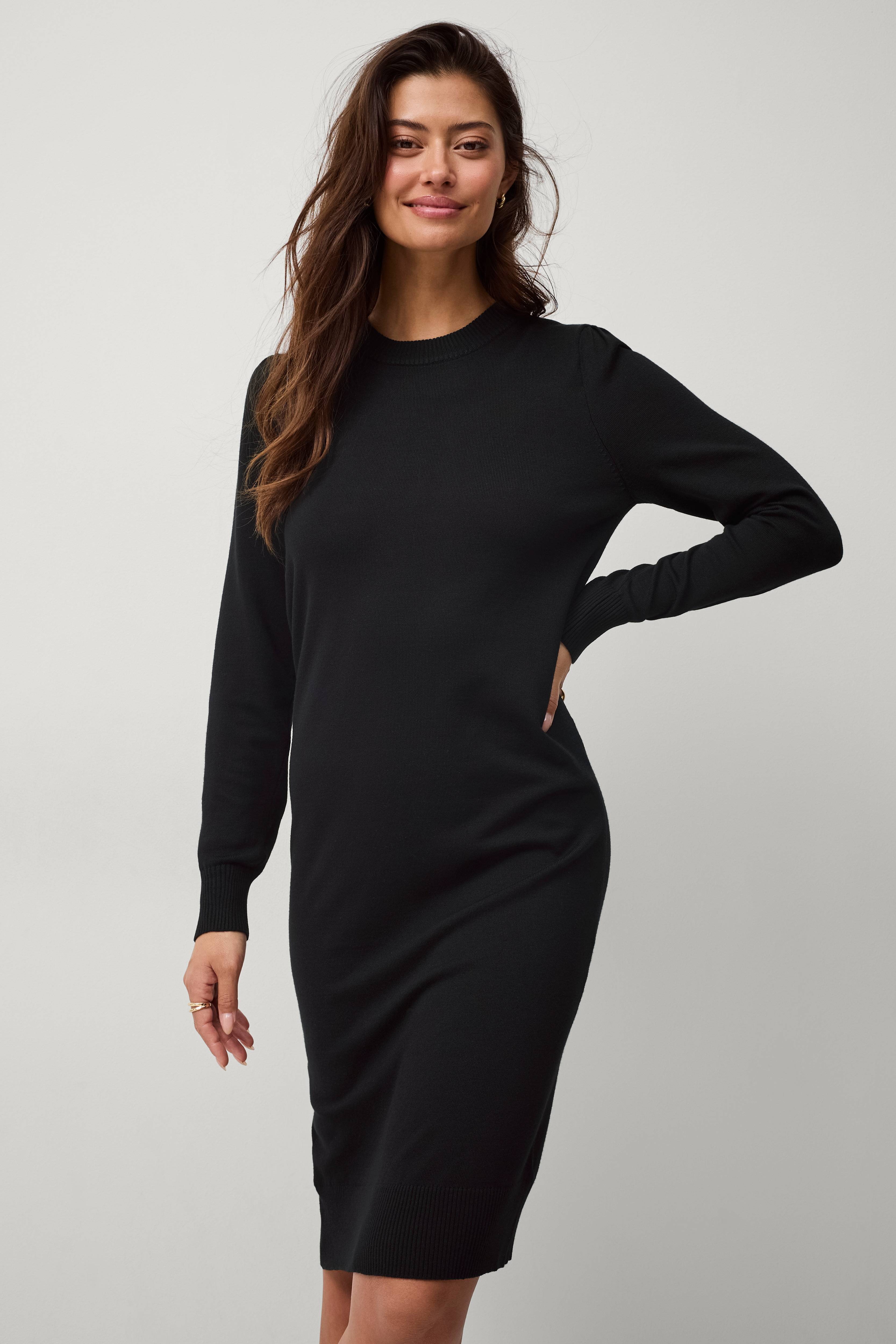 • Kjole i viskoseblanding• Blød, fintstrikket kvalitet• Lige pasform• Ribstrik ved manchetterne, nederst og i halsen• Samling på skuldrene• Længde: 100 cm i størrelse S