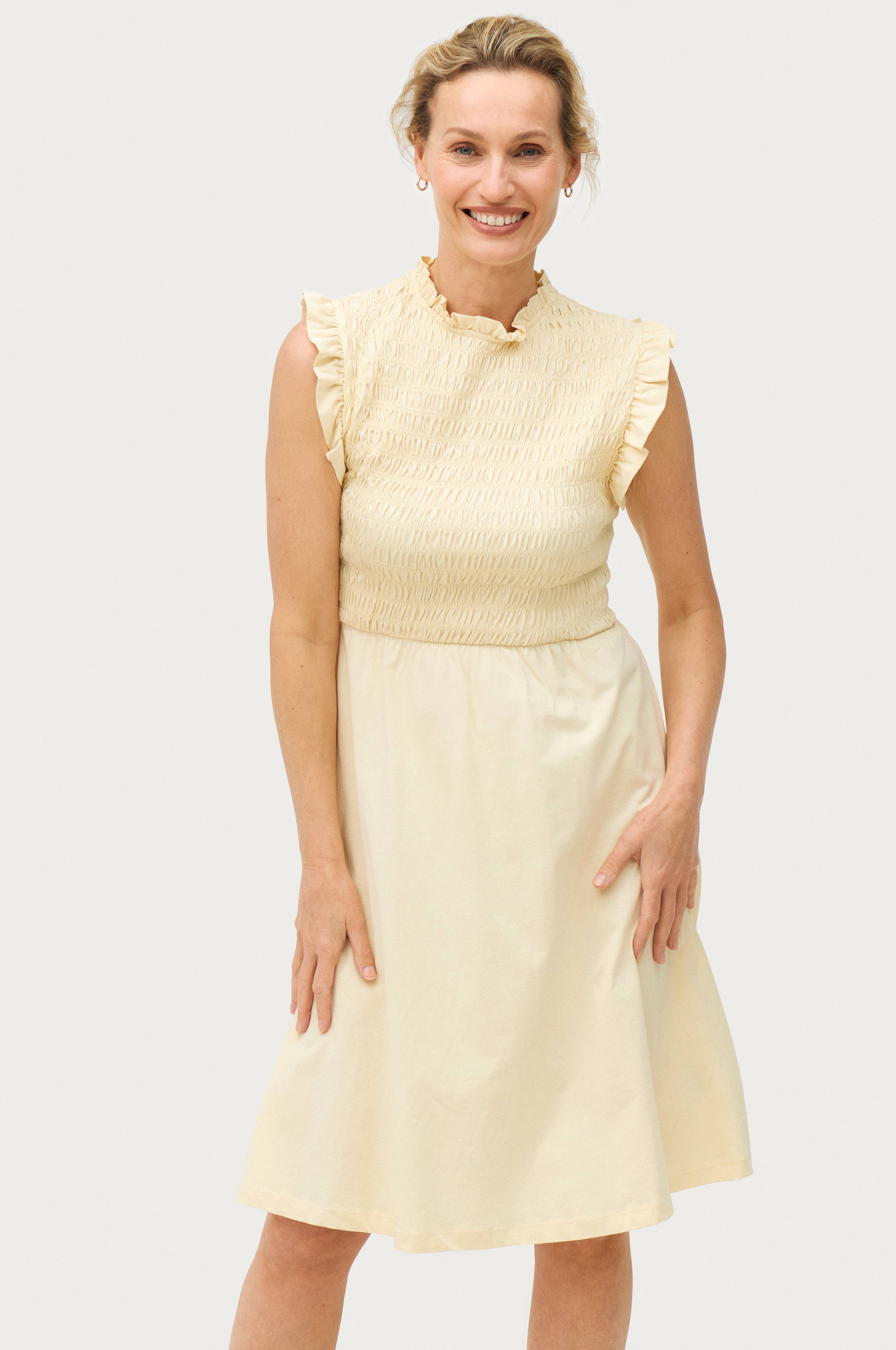 • Flæsekrave• Elastisk smock oppe foran• Volanter på skuldrene• Fremstillet af bomuldsjersey• Længde: 103 cm i størrelse S