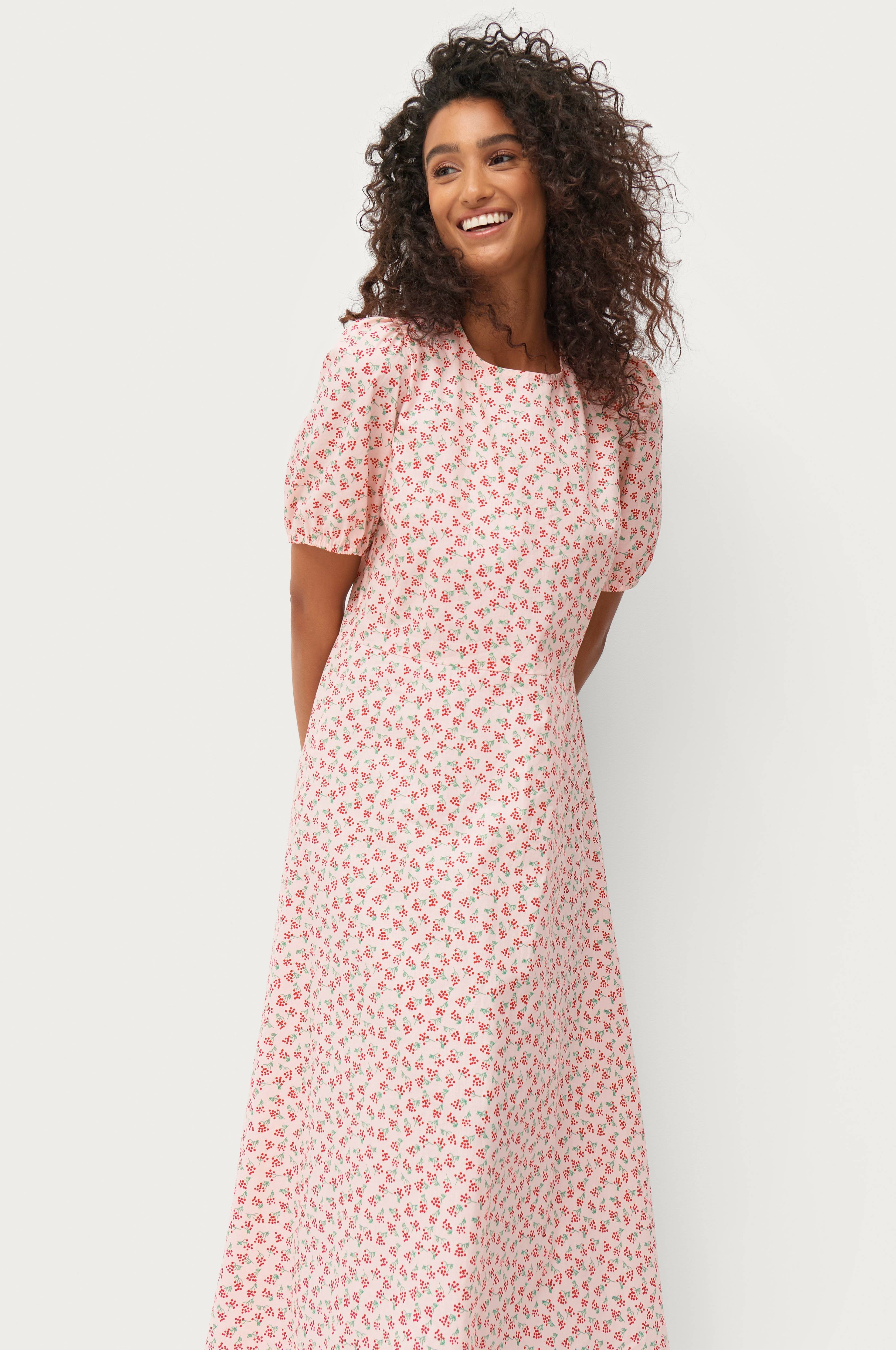• Ankellang model• Korte ballonærmer• Åbning med bindebånd i ryggen• Længde: 128 cm i størrelse S