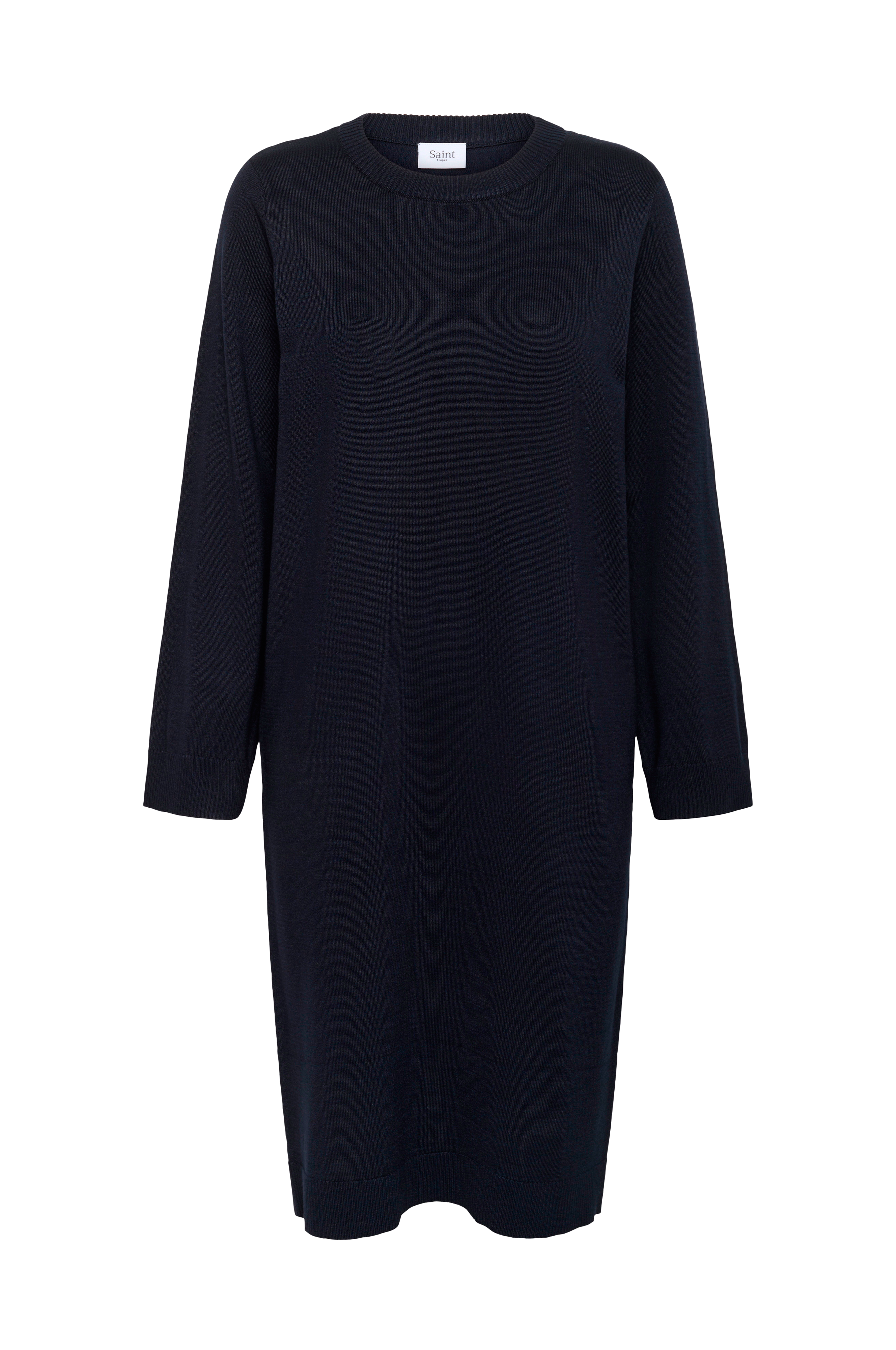 • Fintstrikket, lige kjole• Rund, ribbet halsudskæring• Lange ærmer• Ribstrik ved manchetterne og ved nederste kant• Længde: 104 cm i størrelse S