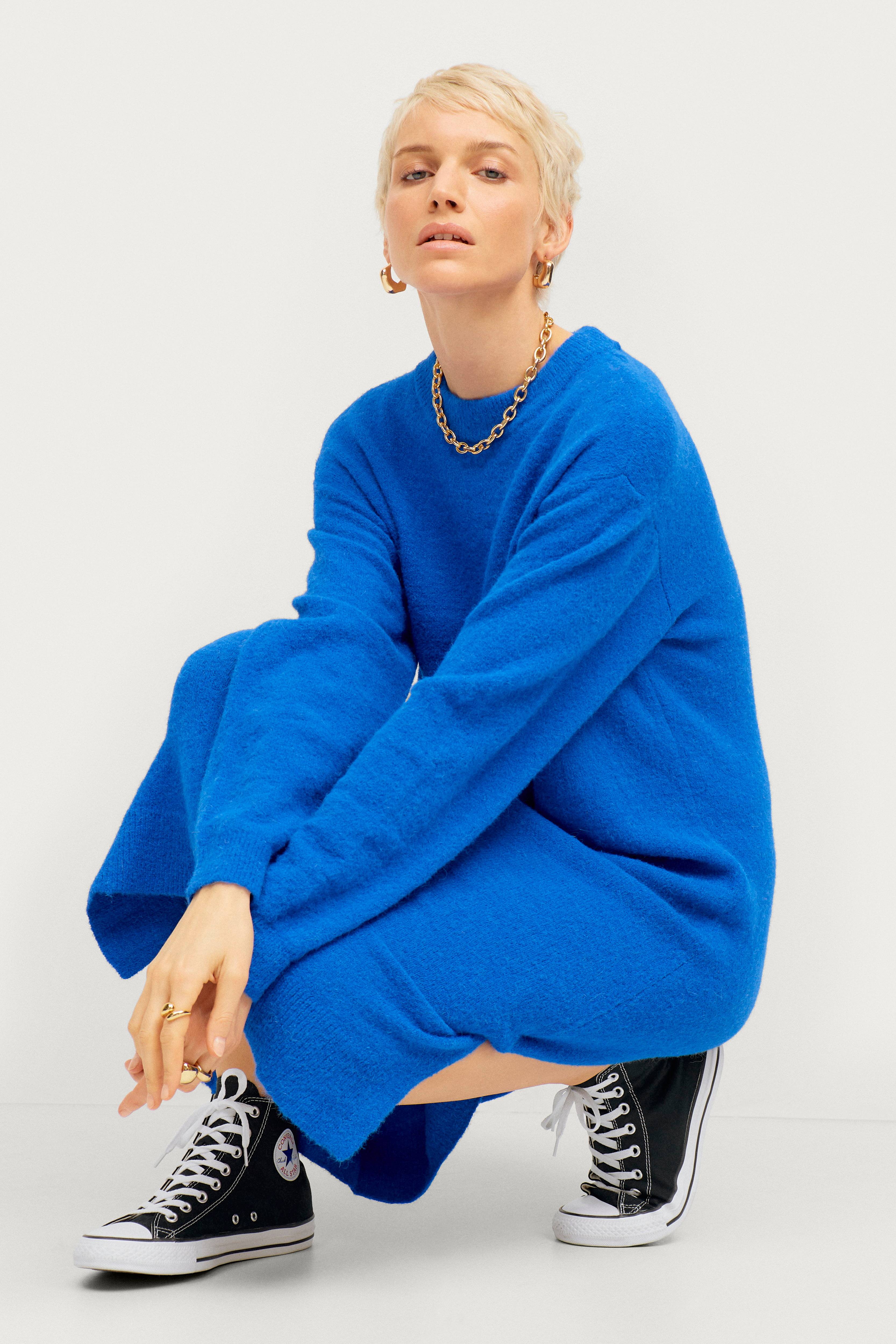 • Strikket kjole• Fremstillet af blød alpakablanding• Rund, ribbet halsudskæring• Nedsænkede skuldre• Slidser nede i siderne• Ribmanchetter ved manchetterne• Ribbet søm• Længde: 118 cm i størrelse S