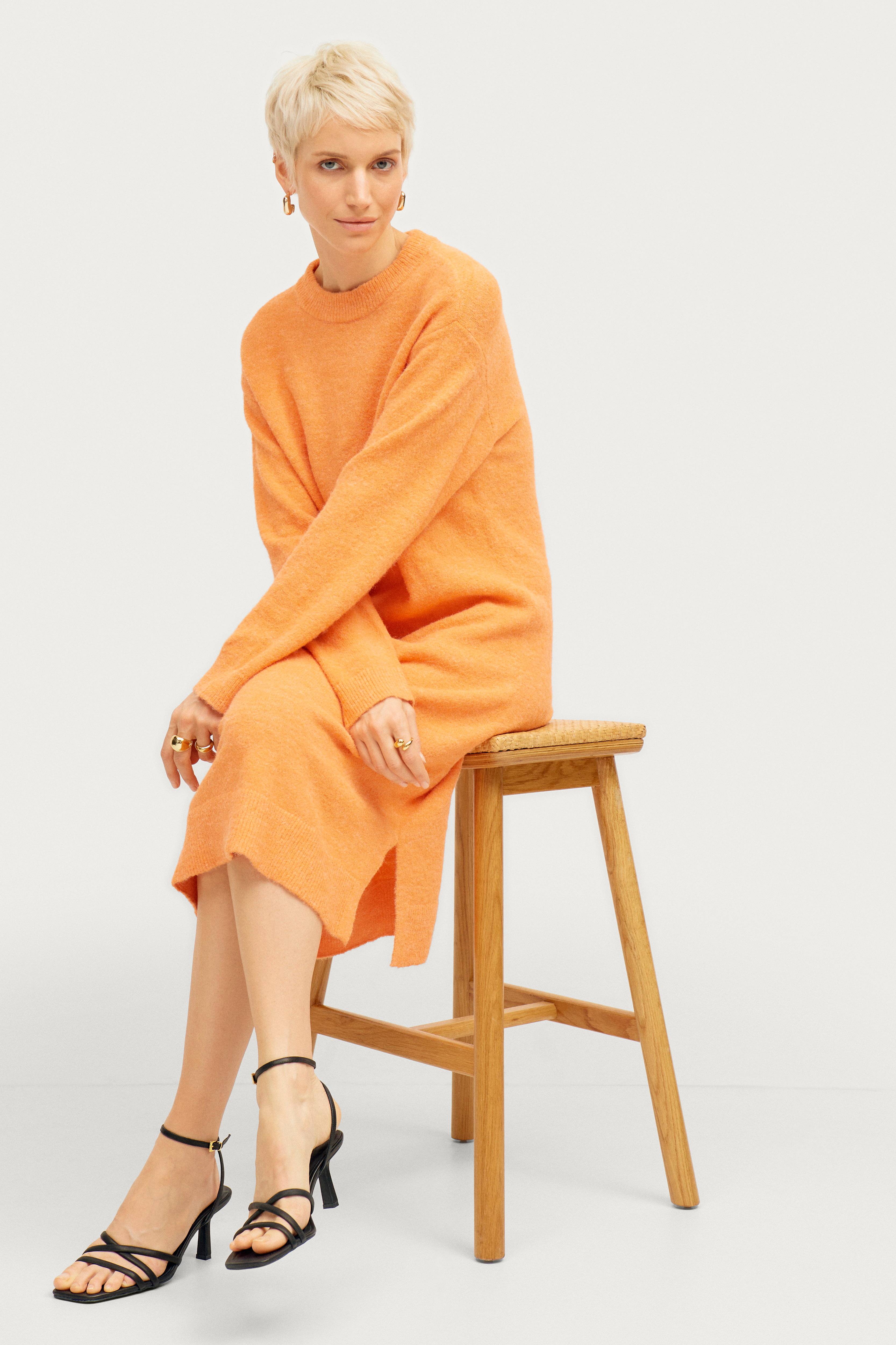 • Strikket kjole• Fremstillet af blød alpakablanding• Rund, ribbet halsudskæring• Nedsænkede skuldre• Slidser nede i siderne• Ribmanchetter ved manchetterne• Ribbet søm• Længde: 118 cm i størrelse S
