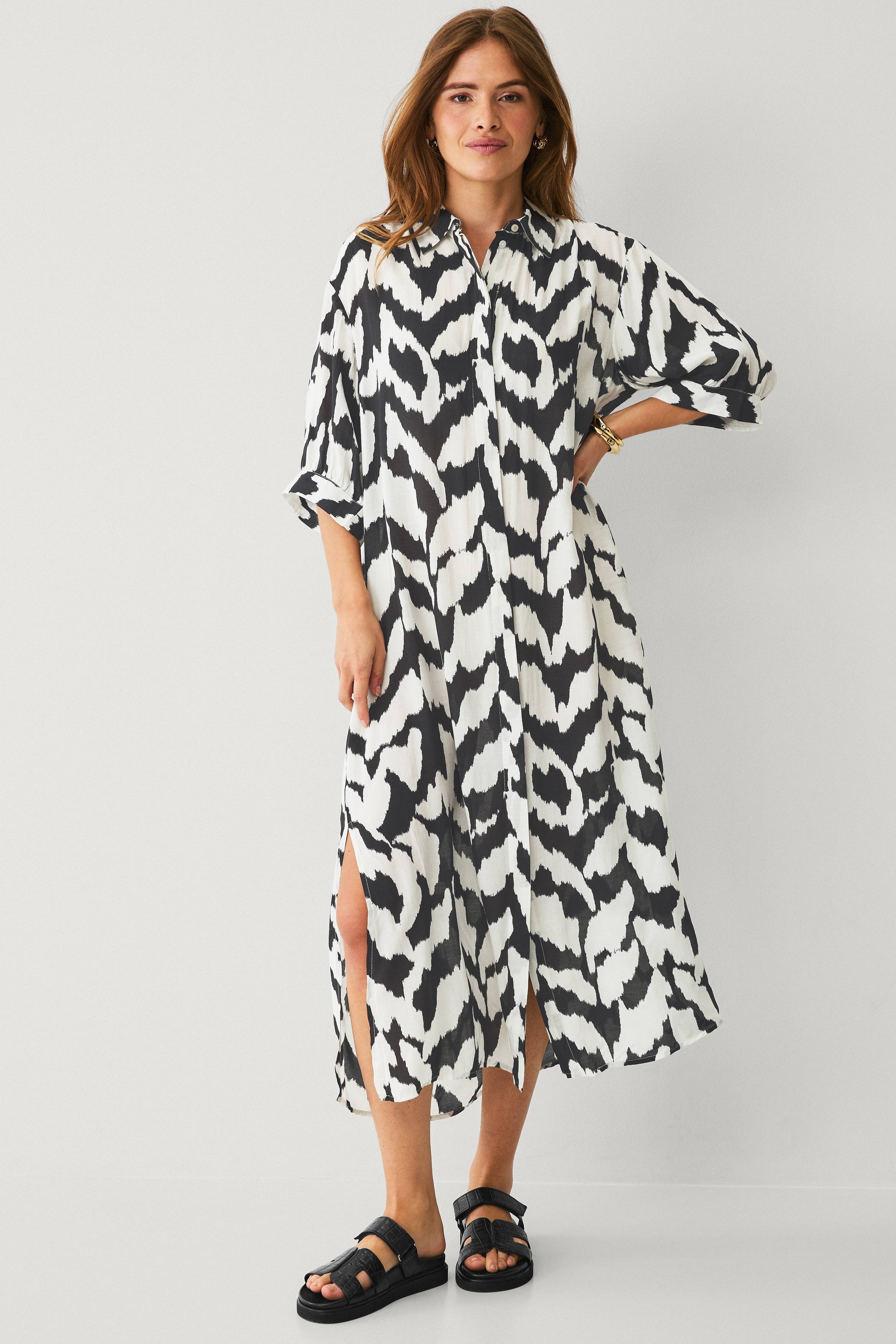 • Lang skjortekjole i viskose• Let transparent• 3/4 lange ærmer• Skjult knaplukning foran• Slids nede i siderne• Længde: 137 cm i størrelse S