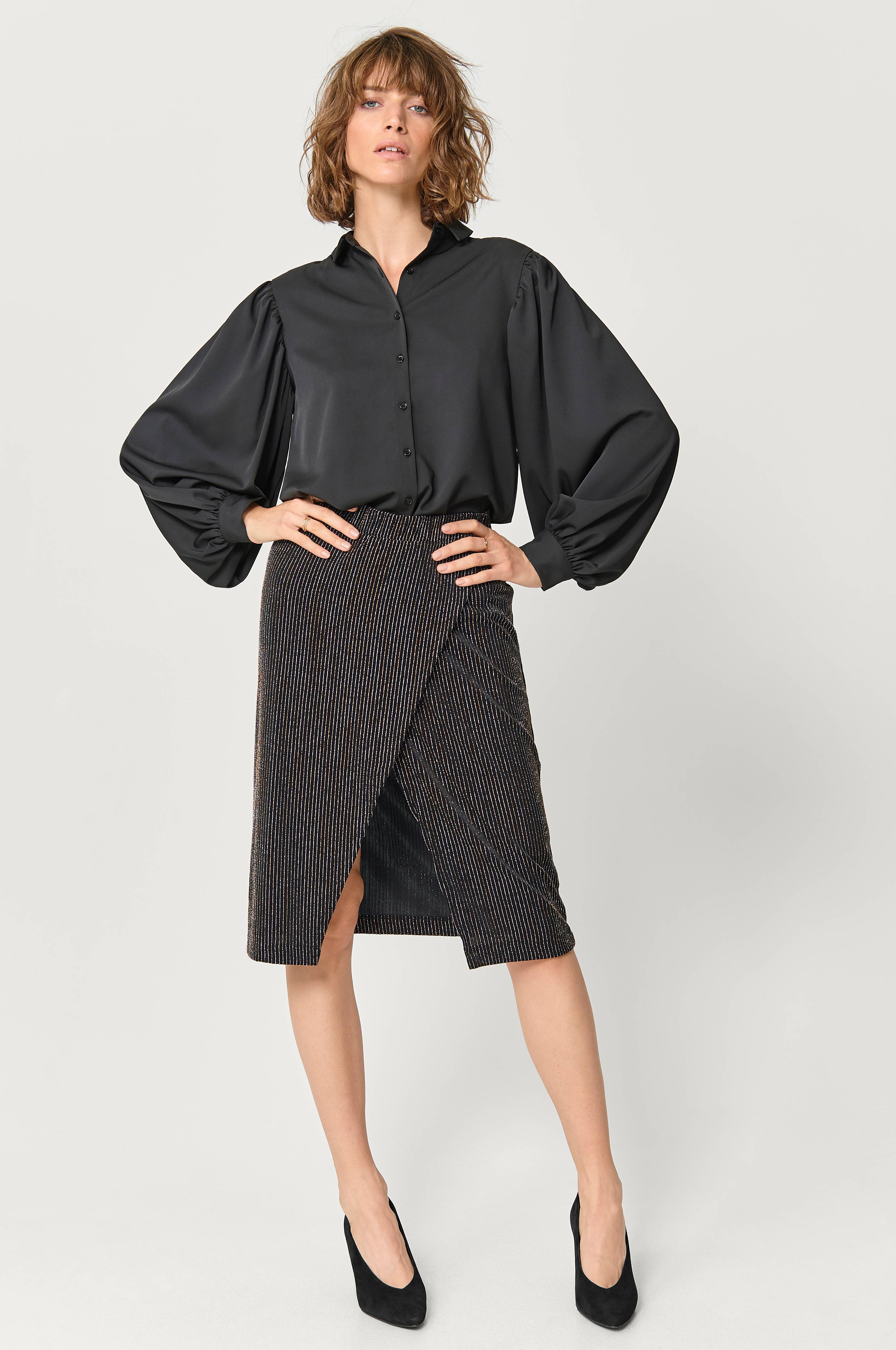 Slå om-nederdel Jersey Skirt fra Saint Tropez. Elegant slå om-model som er åben foran. Høj talje med bred indsat elastik. Smidig jersey med stretch og indvævede glimmerstriber. Længde ca. 67 cm i str. S.