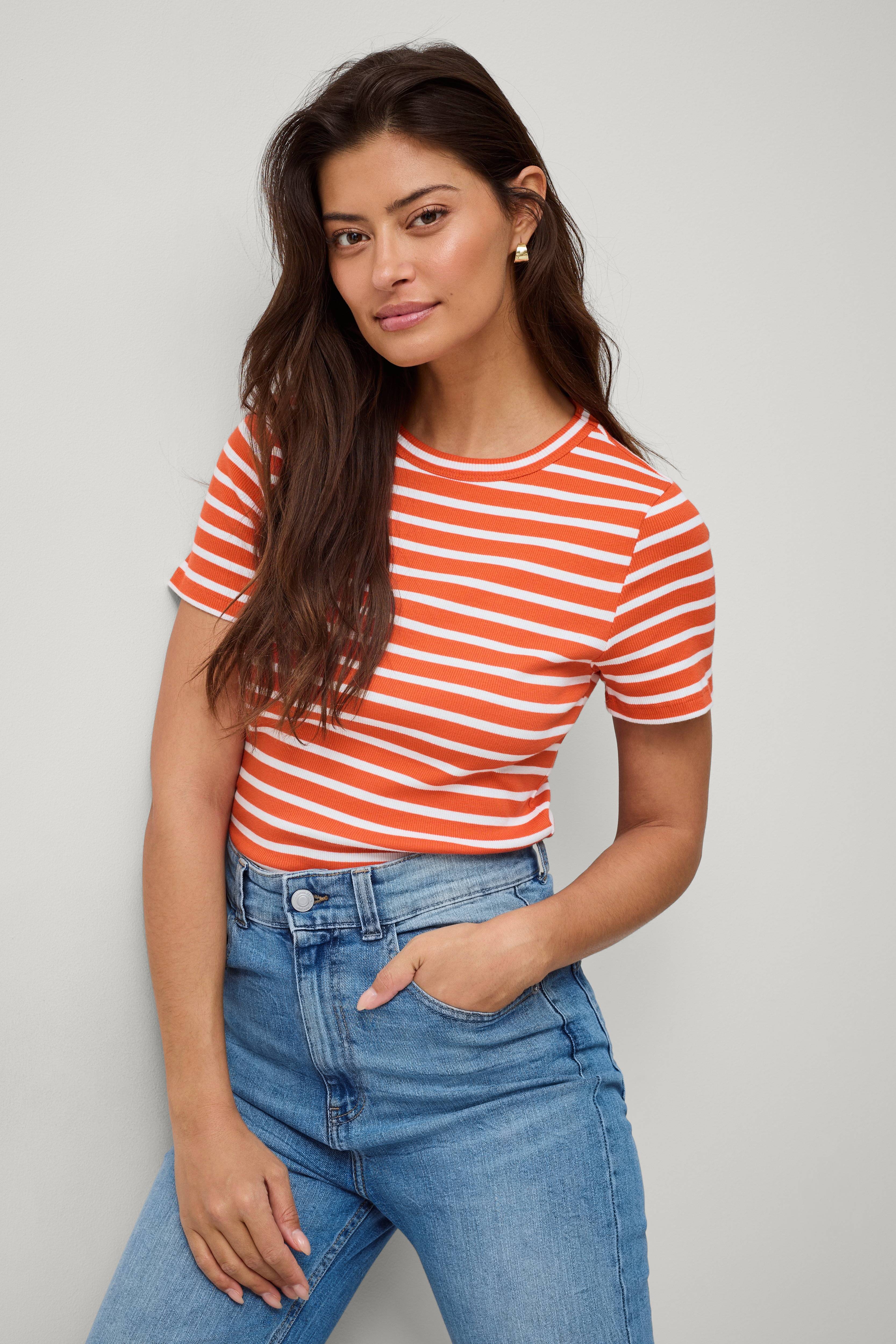 • Ribbet top i bomuldsjersey• Korte ærmer