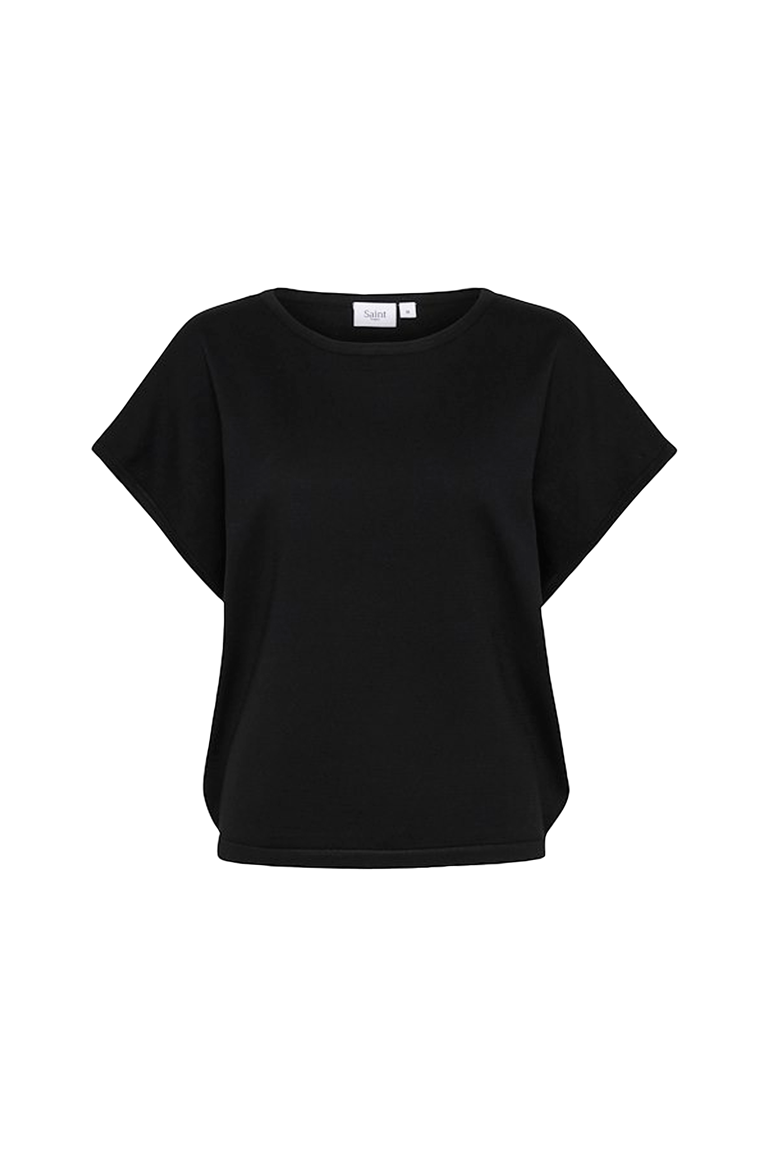 • Lige, fintstrikket model• Rund hals med ribkant• Nedsænket skulder med kort ærme