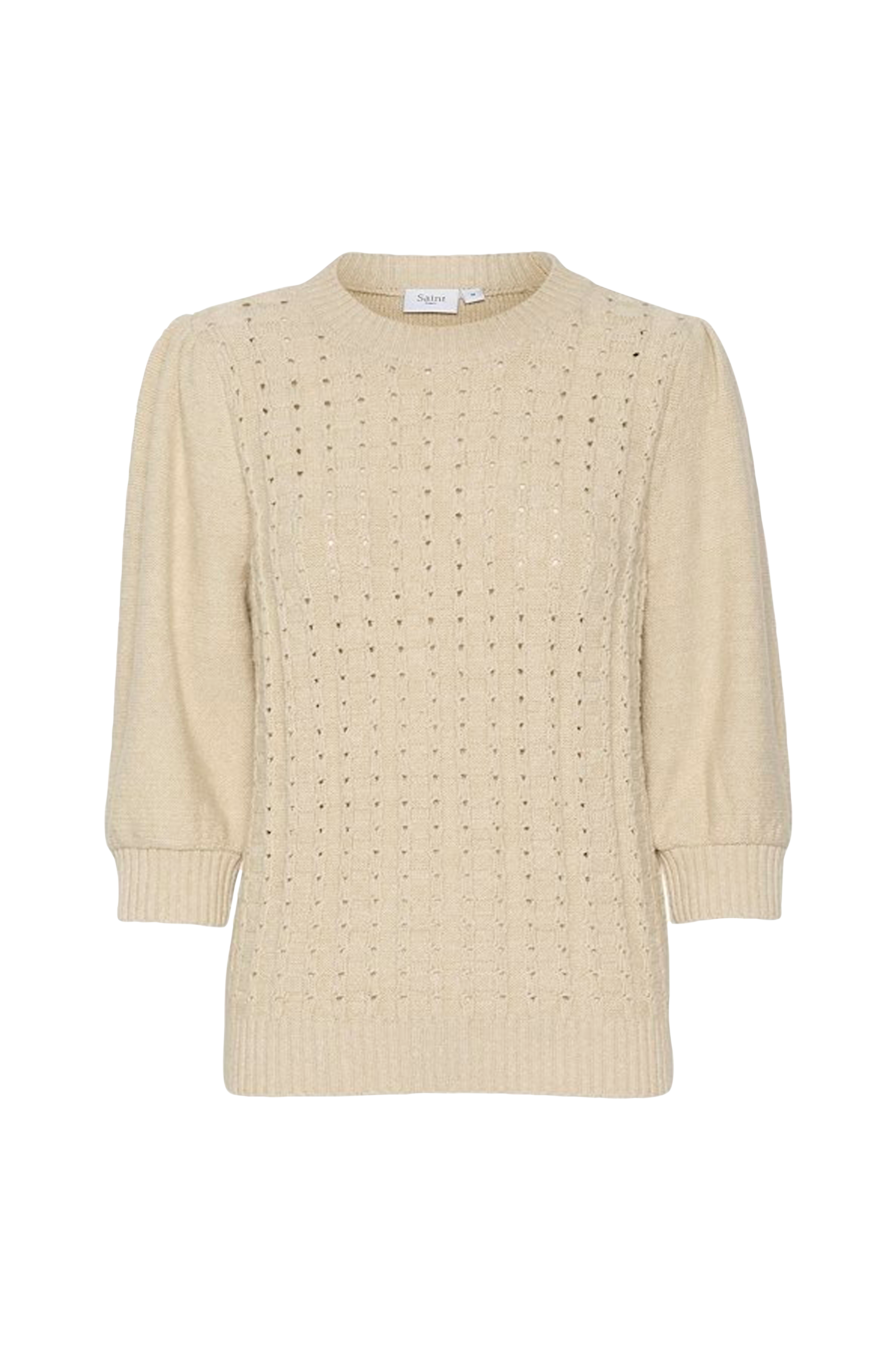 • Jumper med stribet struktur og hulmønster ved fronten• Rund, ribbet halsudskæring• 3/4 lange ballonærmer• Ribmanchetter ved manchetterne og nederst