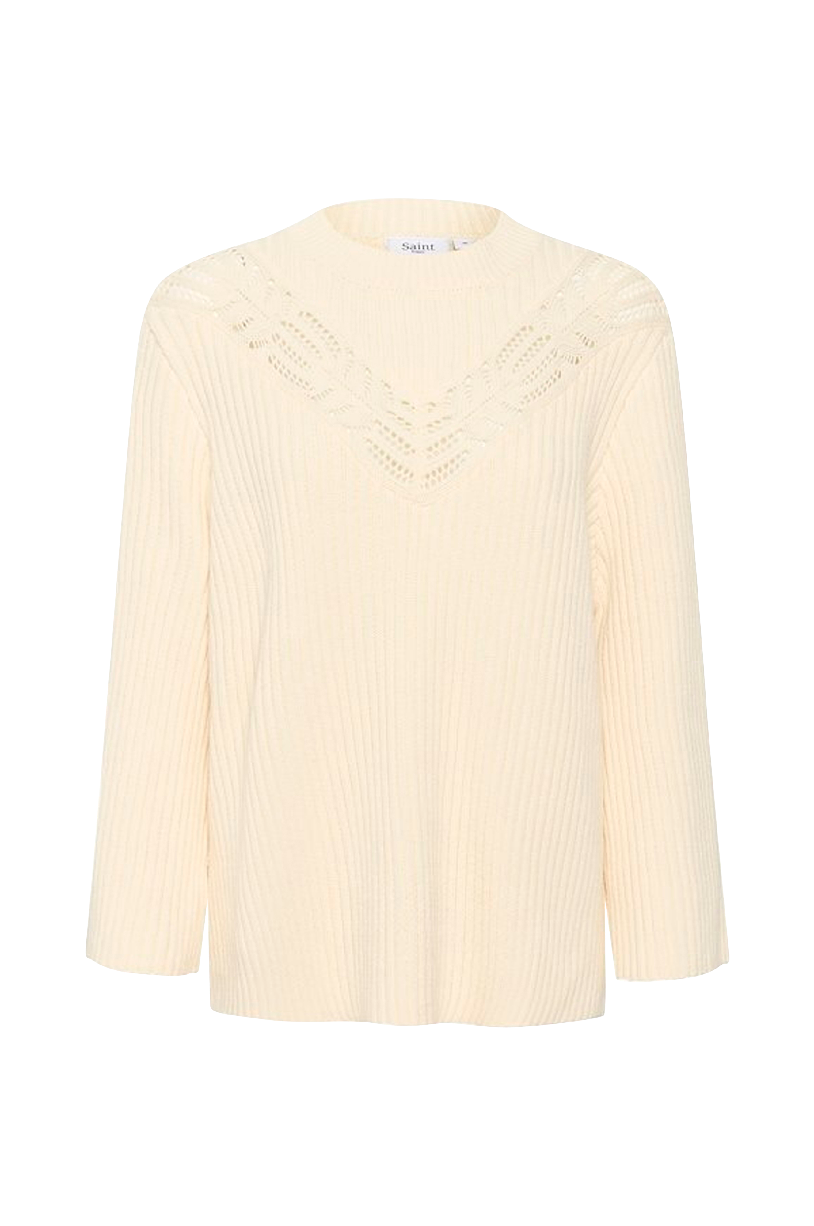 • Lige, stribet model• Rund hals• Mønsterstrikning på brystet• Langt ærme med svaj
