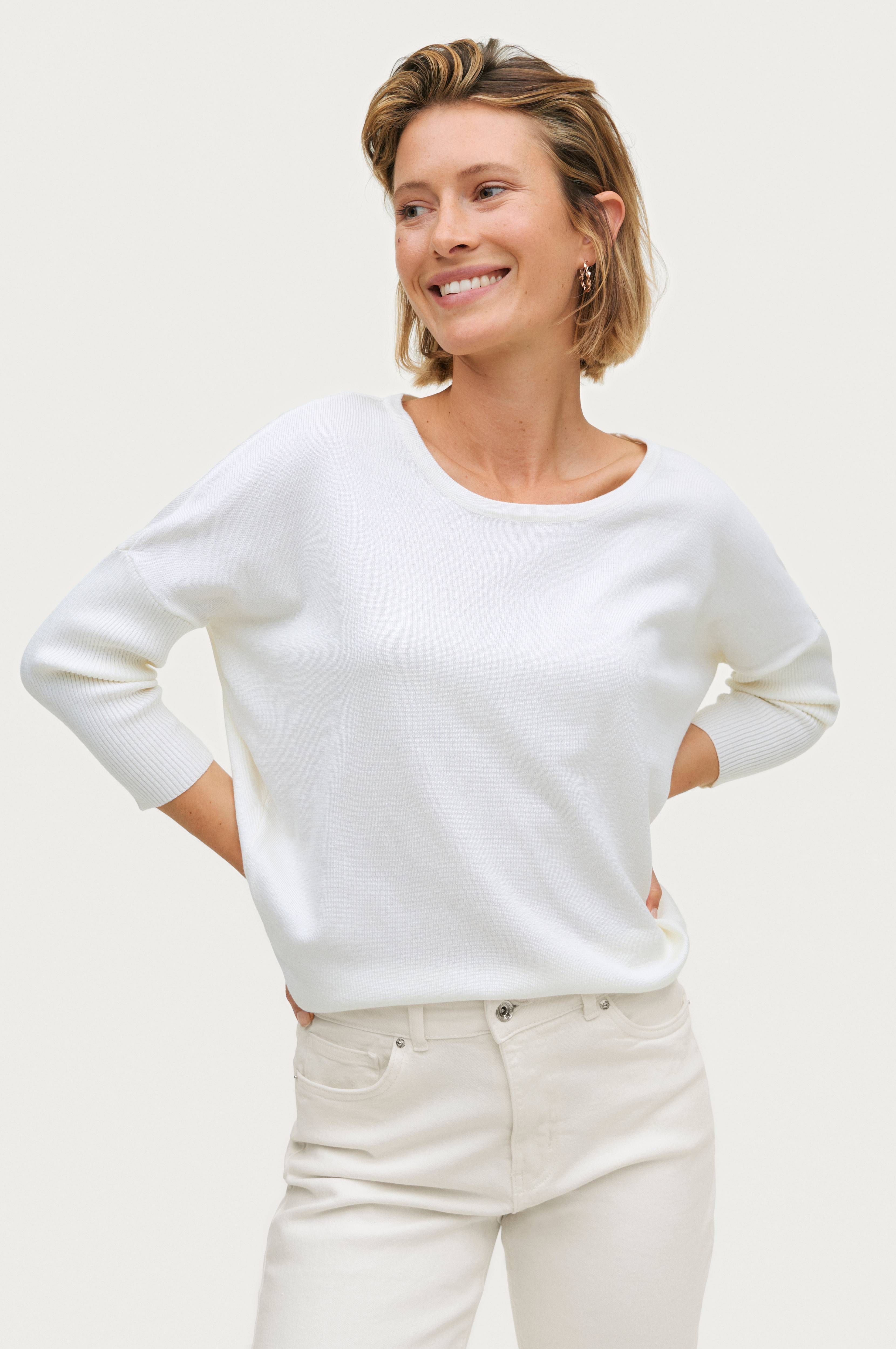 Har denne trøje i flere farver, så tilfreds med pasformen og at ærmerne er trekvart.