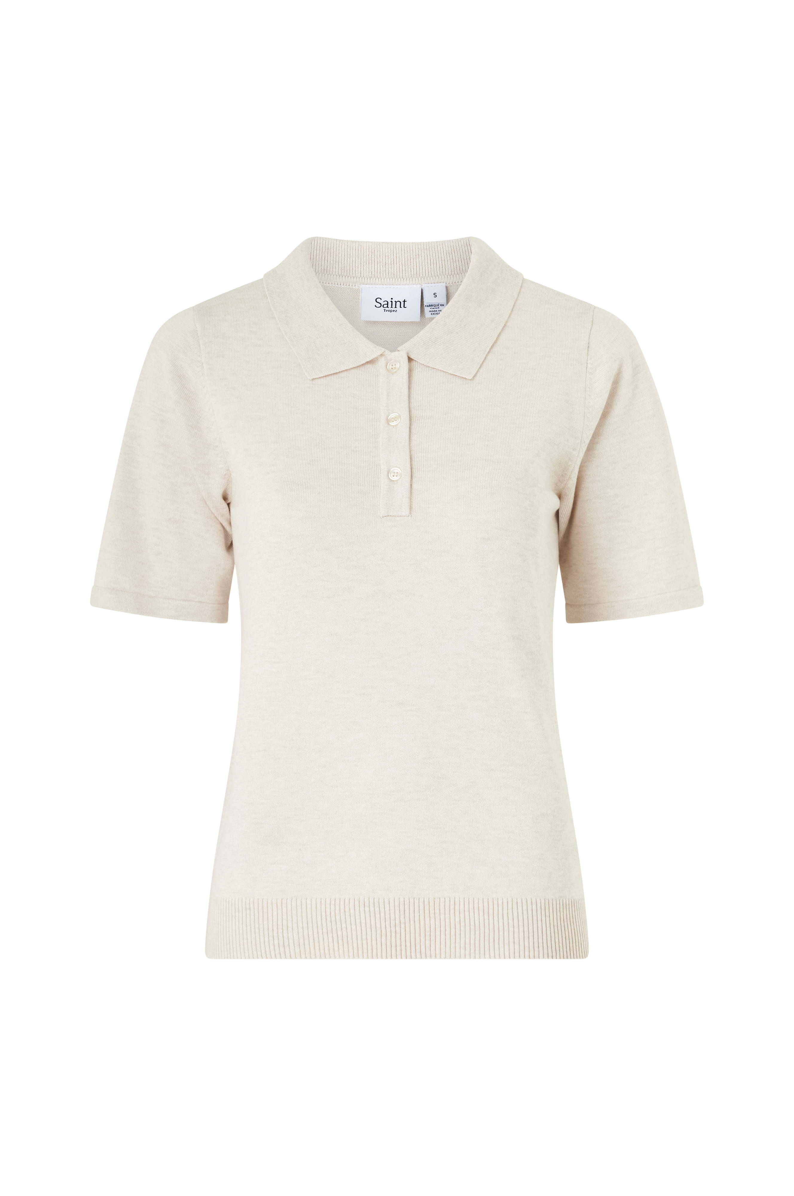 • Fintstrikket trøje med korte ærmer• Ribbet krave• Tre knapper