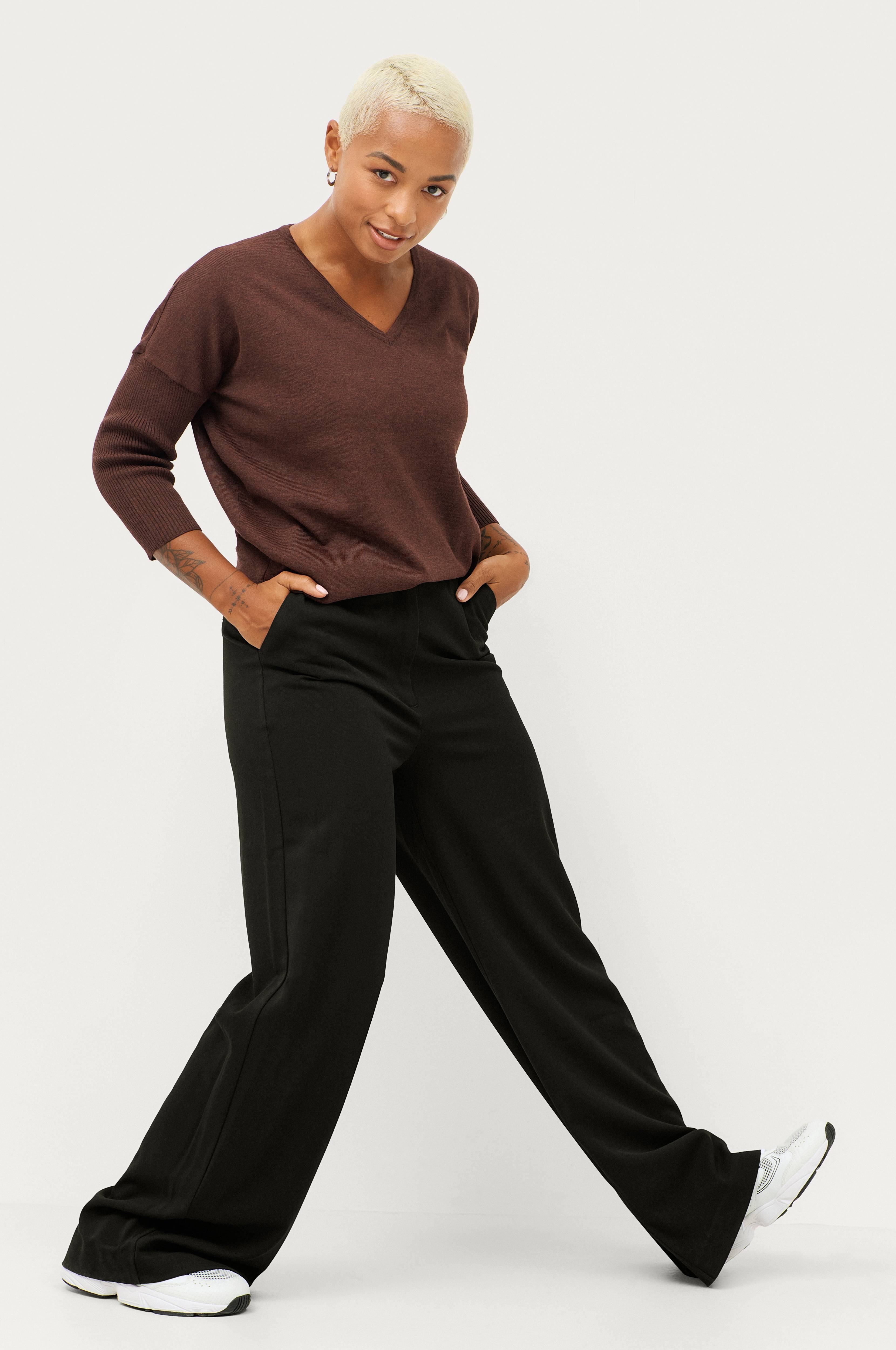 • V-udskæring• 3/4 lange, ribbede flagermusærmer• Fintstrikket kvalitet i viskoseblanding