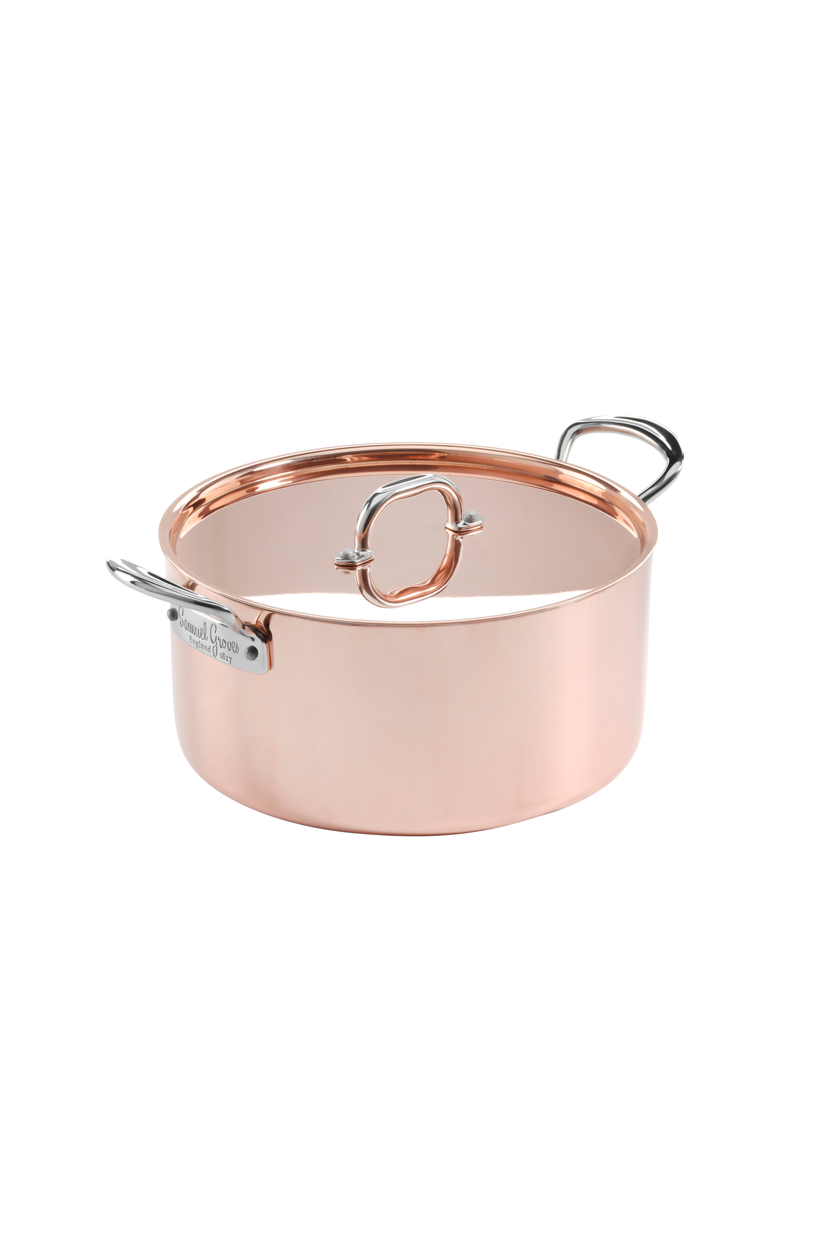 Gryde fra Samuel Grove's Copper Induction-serie, 3 liter. En gryde i rustfrit stål med en elegant, kobberbelagt yderside. Gryden har en praktisk størrelse og passer til de fleste opgaver i køkkenet. Den er også velegnet som serveringsfad. Kobberlåg medfølger. Håndvask anbefales.
