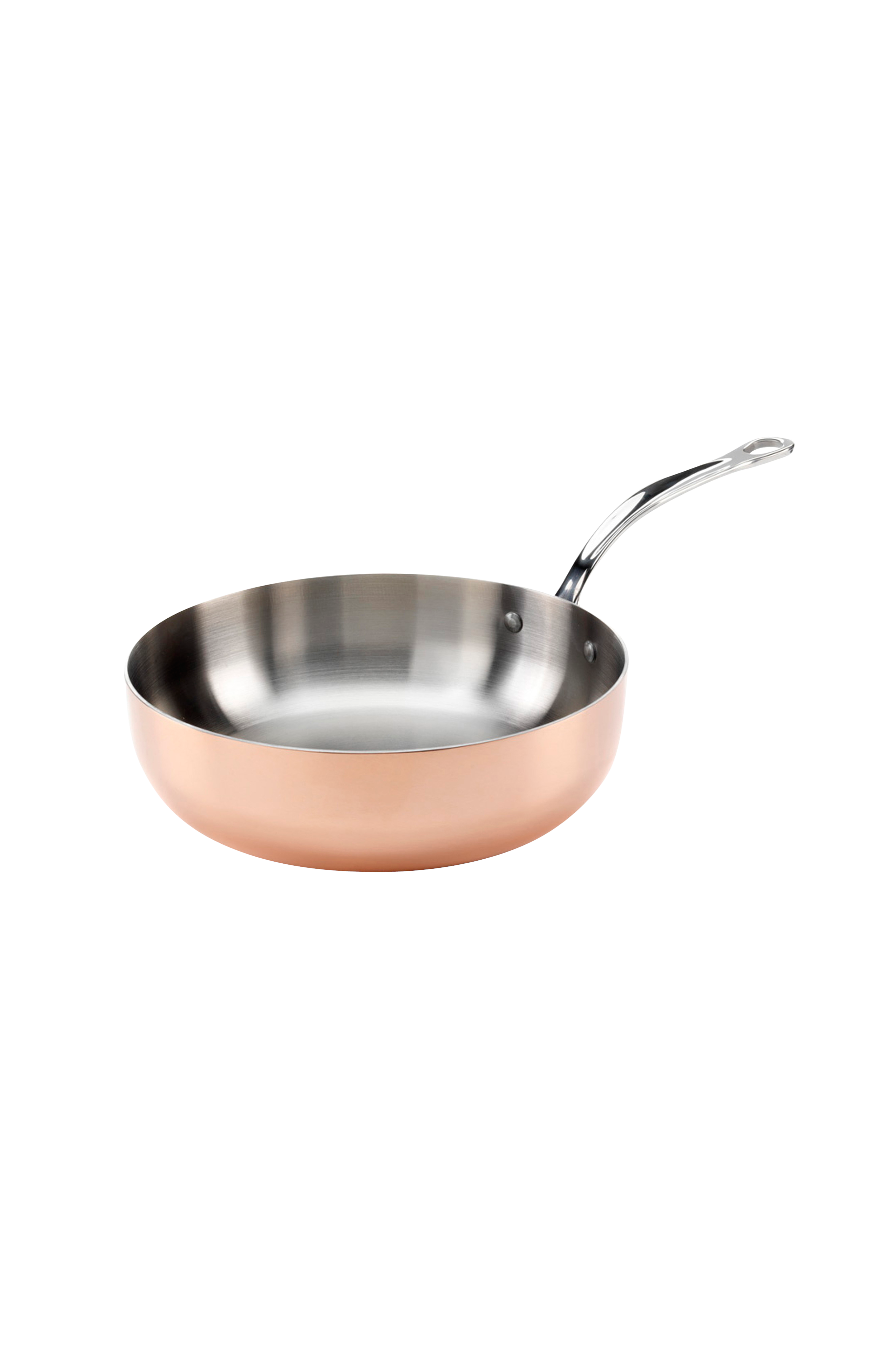 Sauterpande fra Samuel Grove's Copper Induction-serie, 24 cm. En sauterpande i rustfrit stål med et elegant, kobberbelagt ydre. Du kan bruge den til gryderetter og andre retter med sauce, da den har højere kanter end en almindelig stegepande. Panden er også fremragende som serveringsfad. Håndvask anbefales.
