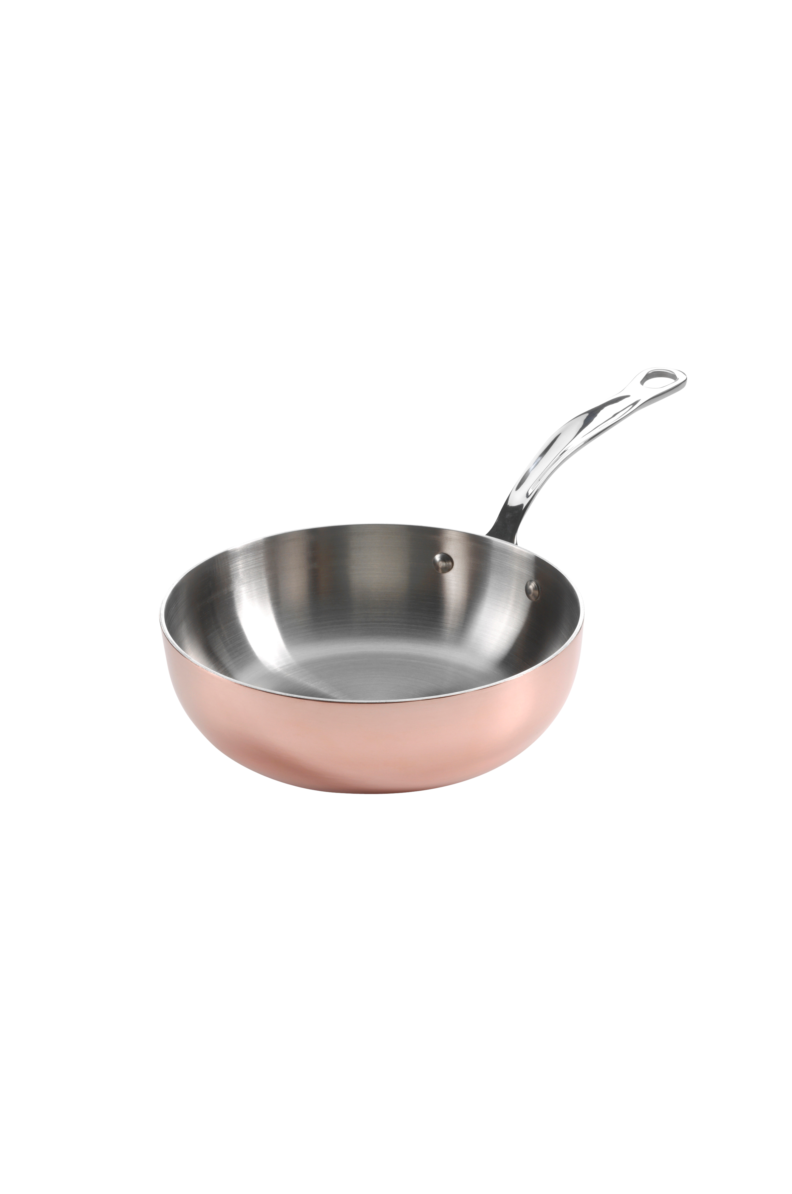 Sauterpande fra Samuel Grove's Copper Induction-serie, 26 cm. En sauterpande i rustfrit stål med et elegant, kobberbelagt ydre. Du kan bruge den til gryderetter og andre retter med sauce, da den har højere kanter end en almindelig stegepande. Panden er også fremragende som serveringsfad. Håndvask anbefales.
