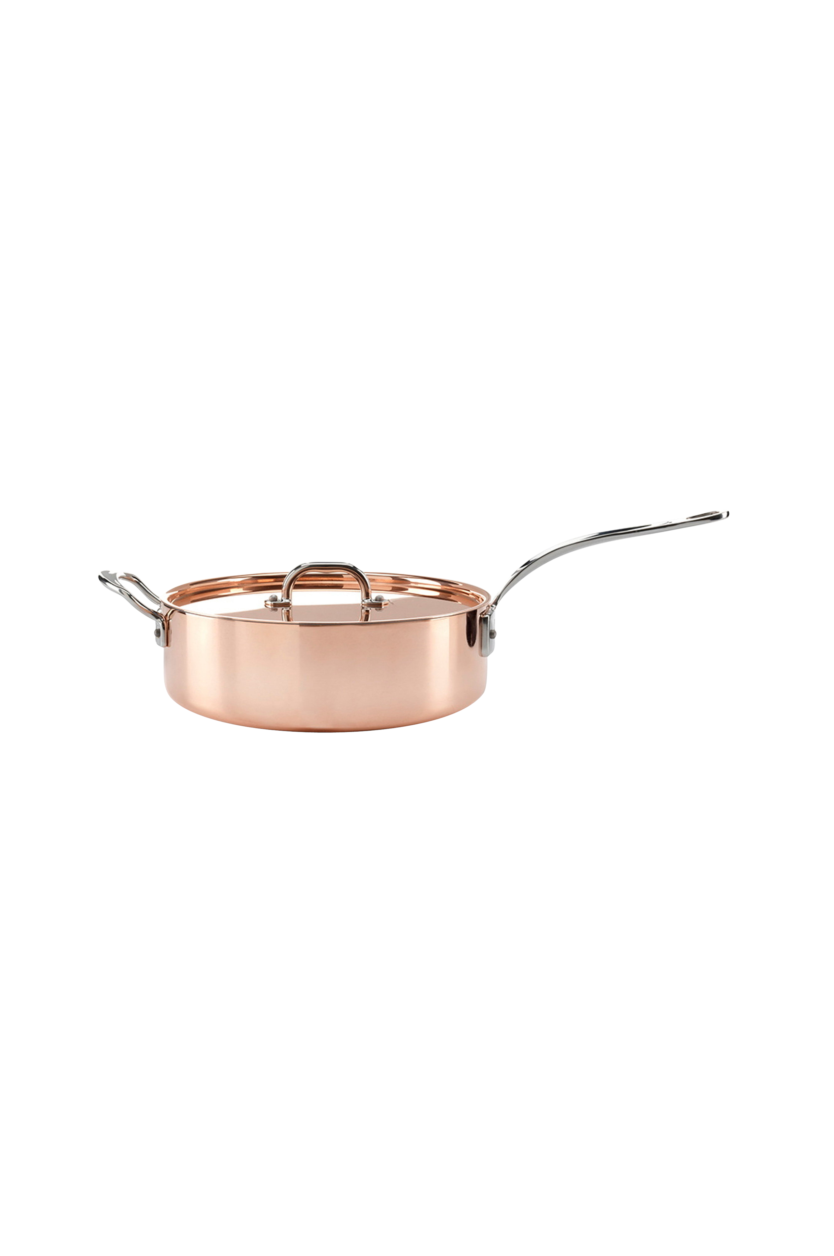 Sauterpande fra Samuel Groves Copper Induction-serie, 26 cm. En sauterpande i rustfrit stål med et elegant, kobberbelagt ydre. Du kan bruge den til gryderetter og andre retter med sauce, da den har højere kanter end en almindelig stegepande. Panden er også fremragende som serveringsfad. Kobberlåg medfølger. Håndvask anbefales.