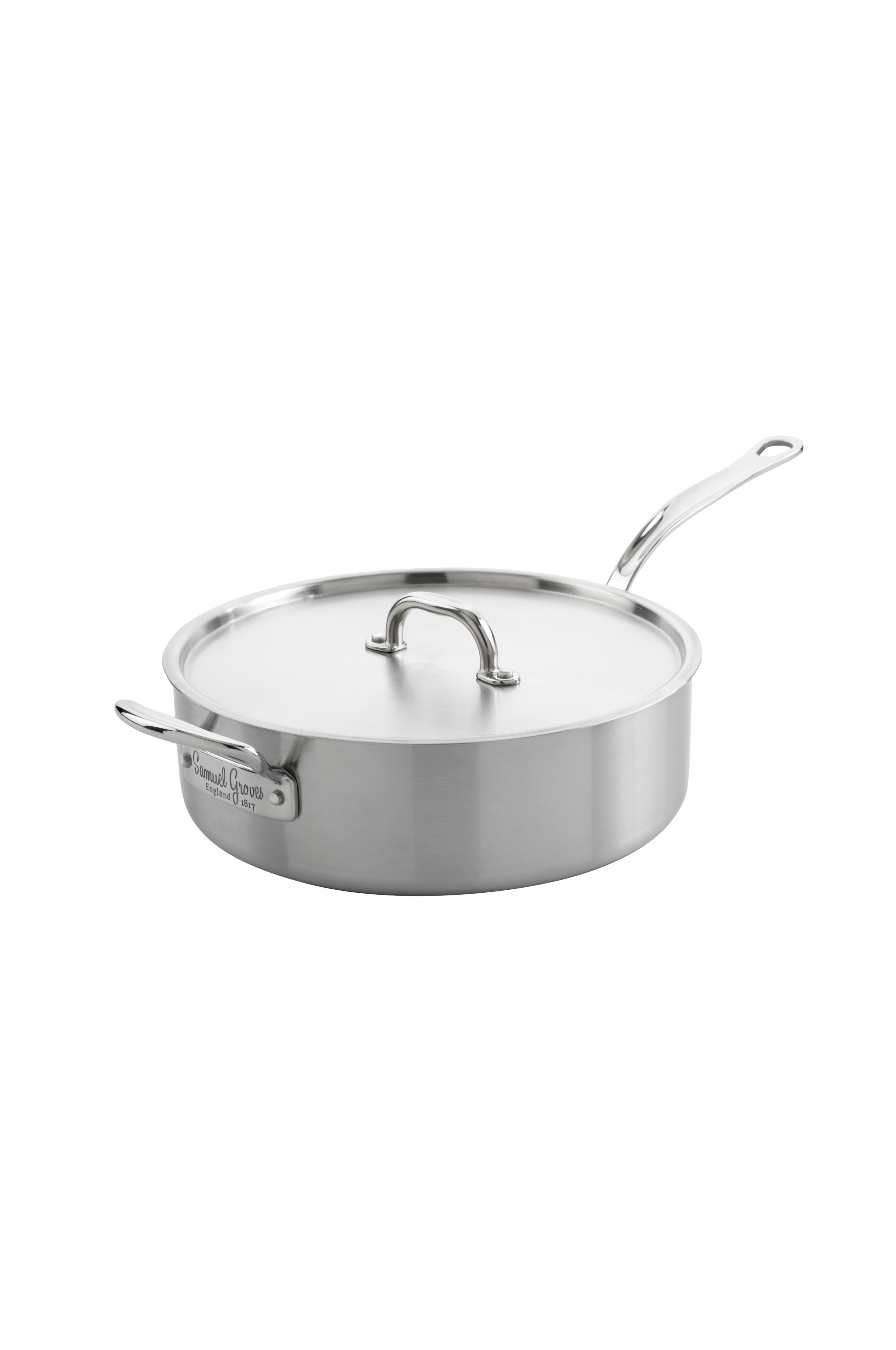 Sauterpande fra Samuel Grove's Classic Stainless Steel-serie, 26 cm. En sauterpande i rustfrit stål med en elegant, børstet finish. Du kan bruge den til gryderetter og andre retter med sauce, da den har højere kanter end en almindelig stegepande. Panden er også fremragende som serveringsfad. Rustfrit stål låg medfølger.