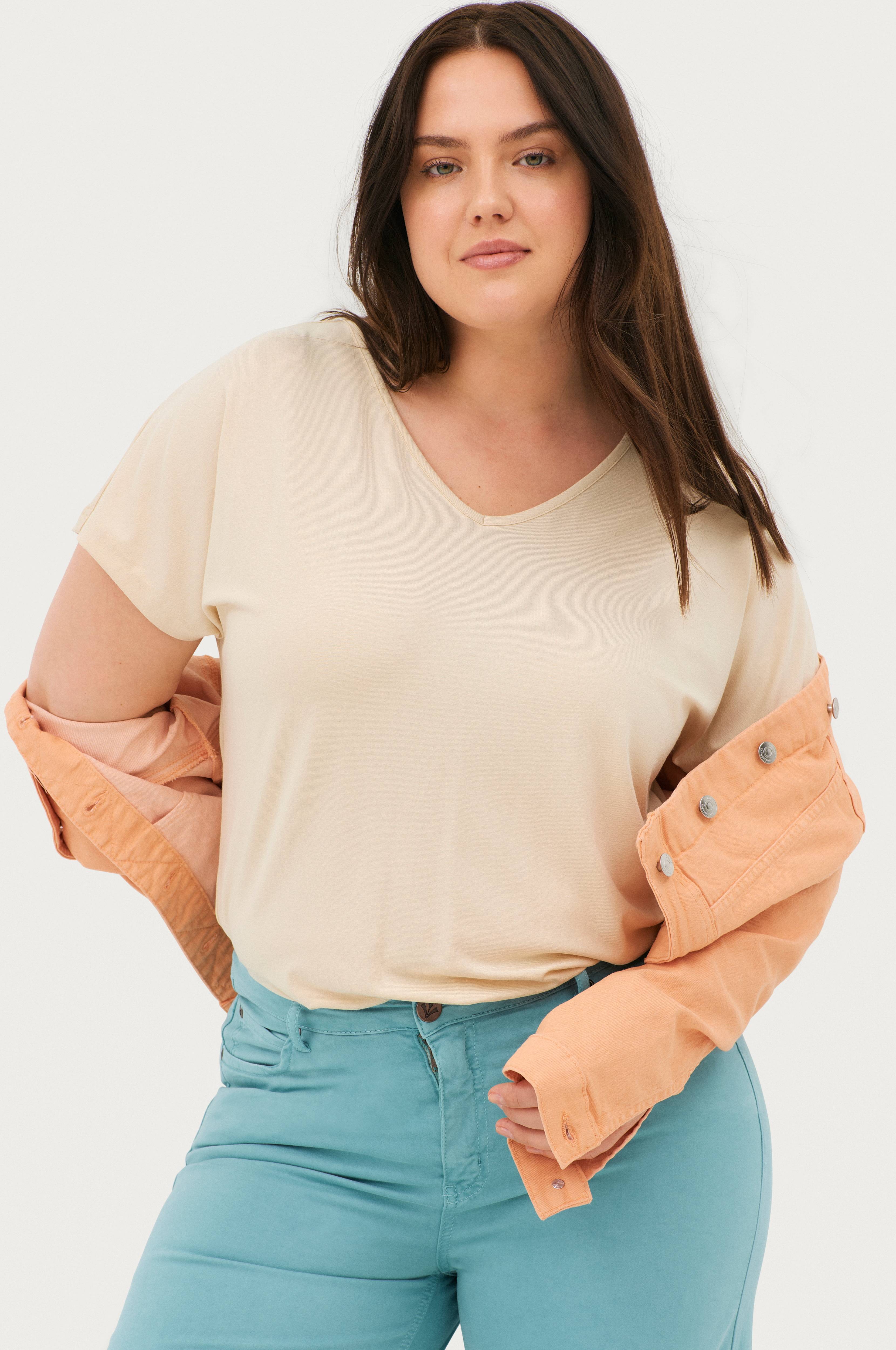 • Kort ærme• V-udskæring• Fremstillet af blød viskosejersey