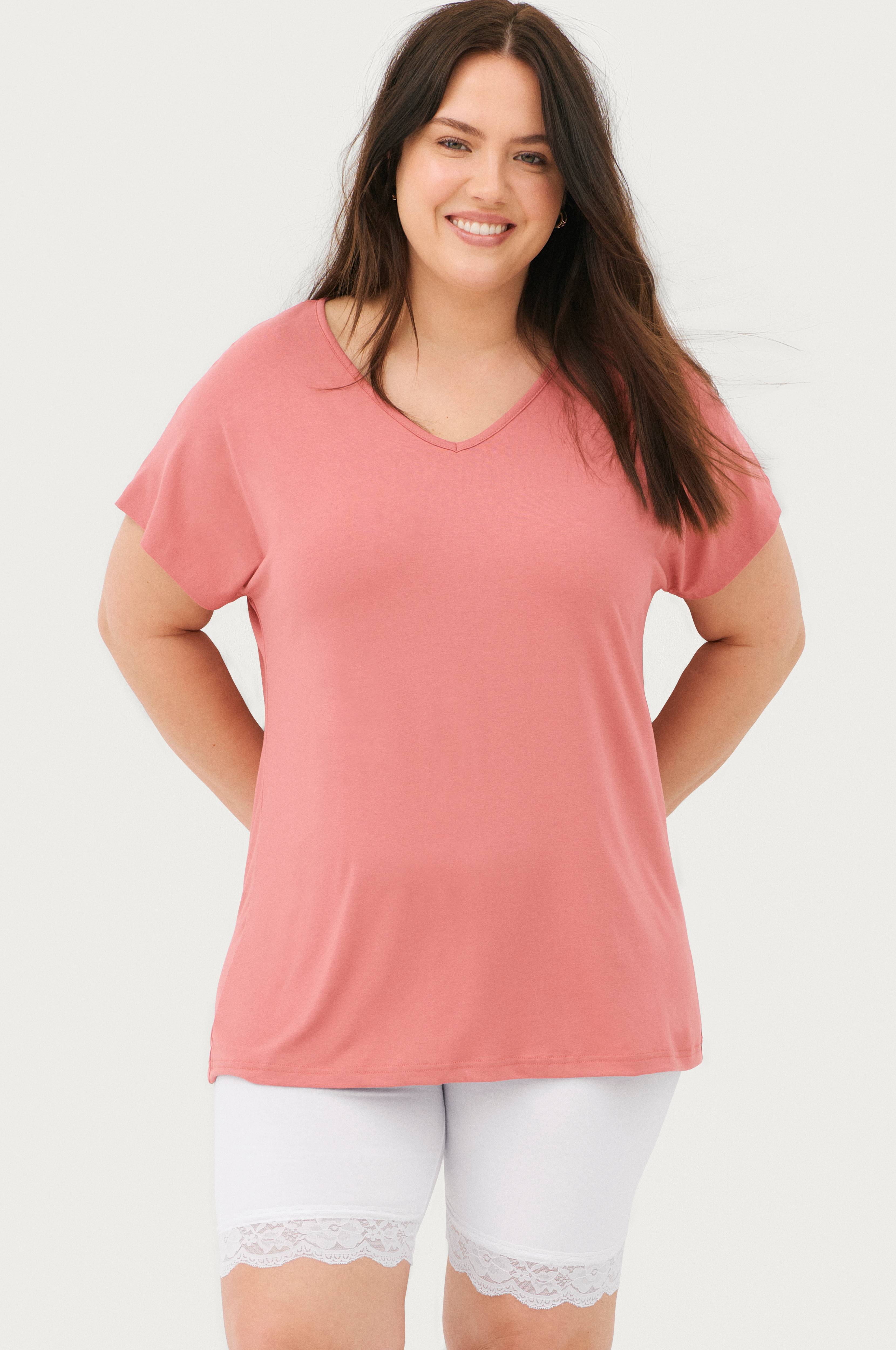 • Kort ærme• V-udskæring• Fremstillet af blød viskosejersey