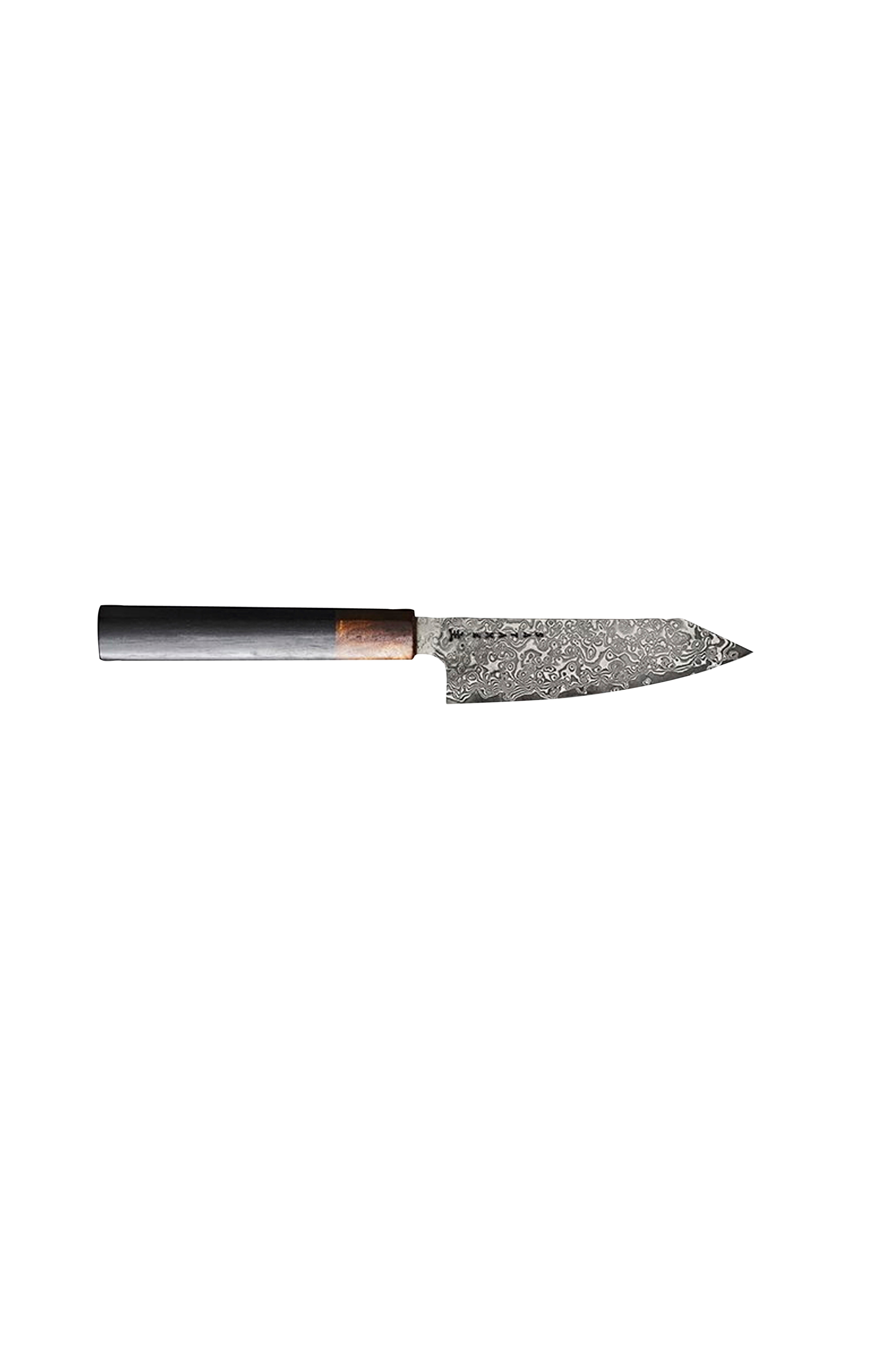 Satake omo - tradition & håndværk satake omo petty ペティナイフ omo petty er en meget delikat og elegant urtekniv med en bladlængde på 12 cm. Det blødt polerede damaskusblad er stærkt og tyndt, hvilket giver en meget eksklusiv fornemmelse, når det bruges. den særlige bladform med en skrå front er en hybrid, hvor klassisk petty møder den karakteristiske form på en bunka. petty / skrællekniven er en perfekt model til det mindre arbejde, de mindre råvarer, hvor nøjagtighed er af stor betydning. Skræl løg, kartofler, skær frugt og grønt eller detaljer arbejdet med f.eks. fisk. bladet bladene i omo serien fra satake har et utroligt smukt damaskusblad med 67 lag aus-10 stål. Dette stål fremstilles af aichi steel corporation i Japan. Det er optimalt i køkkenknive af høj kvalitet på grund af dets afbalancerede egenskaber. aus-10 har en rockwell-hårdhed (hrc) på omkring 58-60, hvilket gør det hårdt nok til at holde en skarp kant, men blødt nok til at være relativt let at slibe. Stålet har ...