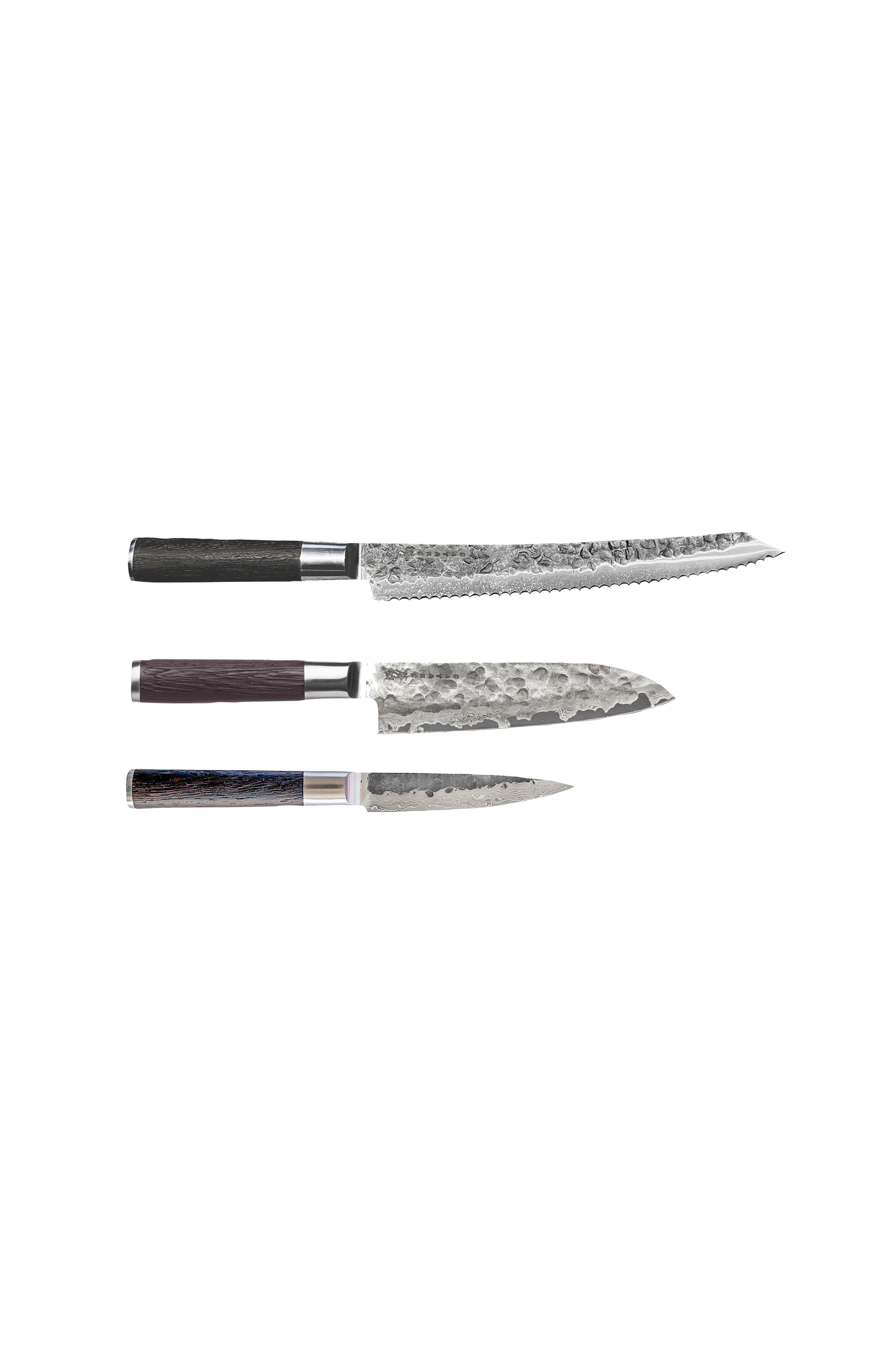 Kuro er en serie af groft hamrede knive. Her i et flot sæt med 3 dele.