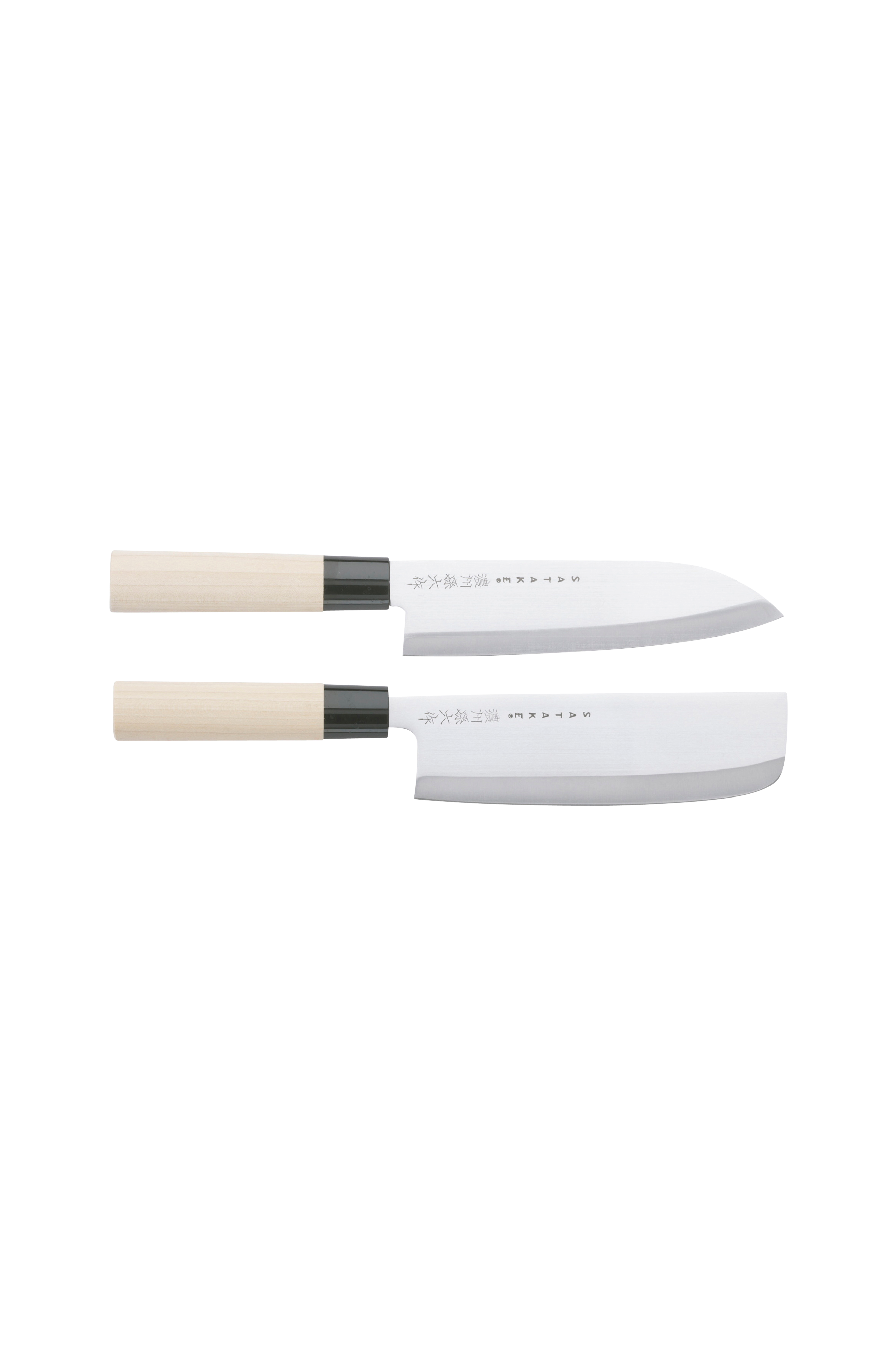 Sættet indeholder: Grøntsagshakker og japansk kokkekniv Santoku, som hakker og skærer med japansk præcision. Det høje blad betyder, at dine knoer ikke støder mod skærebrættet. Leveres i eksklusiv balsaboks.