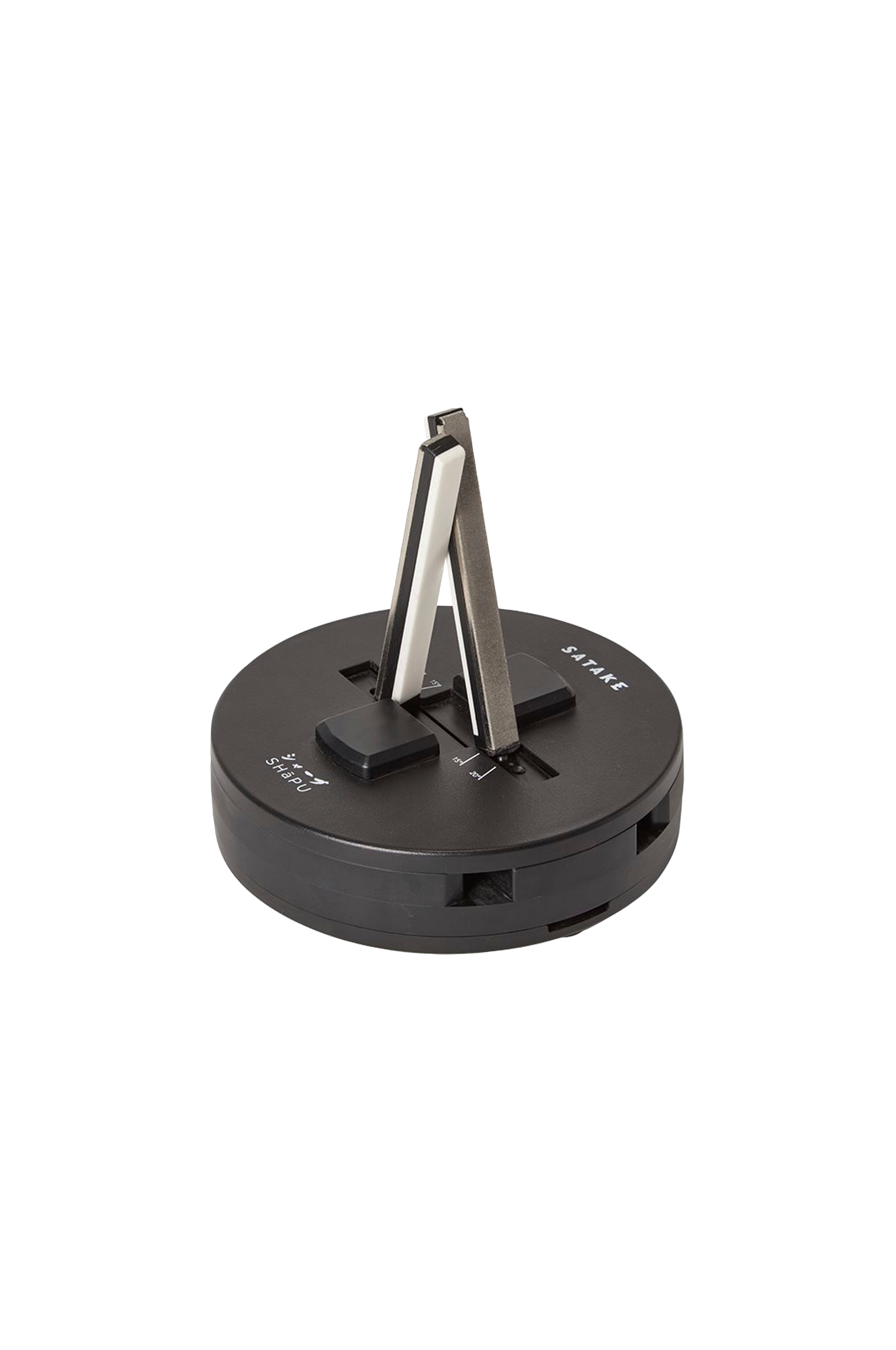 Satake shāpu er en patenteret manuel knivsliber, der giver de bedste resultater. Knivsliberen sliber/polerer japanske kanter 15°-18°, europæiske kanter 20° - 23°. Satake shāpu har fjederbelastede, drejelige diamant/keramiske slibe- og polerstænger, der tilpasser sig den sikre* knivsæg for optimal slibning og finpudsning/polering. *Selvjusterende funktion diamantbelagte slibestænger til at forme knivsæggen på sløve knive, samt keramiske honingstænger, der vedligeholder, finpudser/polerer knivsæggen til en optimal skarp kant. Først skal du lægge mærke til din knivs slibevinkel. Den japanske vinkel er 15°, og den europæiske er 20°. Placer satake shāpu på en stabil og jævn overflade. Hvis din kniv er meget sløv, skal du først bruge diamantsiden af stængerne til at forme/skærpe knivsæggen til en ny æg. Bemærk, at diamantsiden kun skal bruges, når skarpheden ikke længere kan opnås ved at slibe/polere med de keramiske stænger. Til kontinuerlig vedligeholdelse af skarpheden bør kun de keramiske stave bruges. Fin slibning/polering...