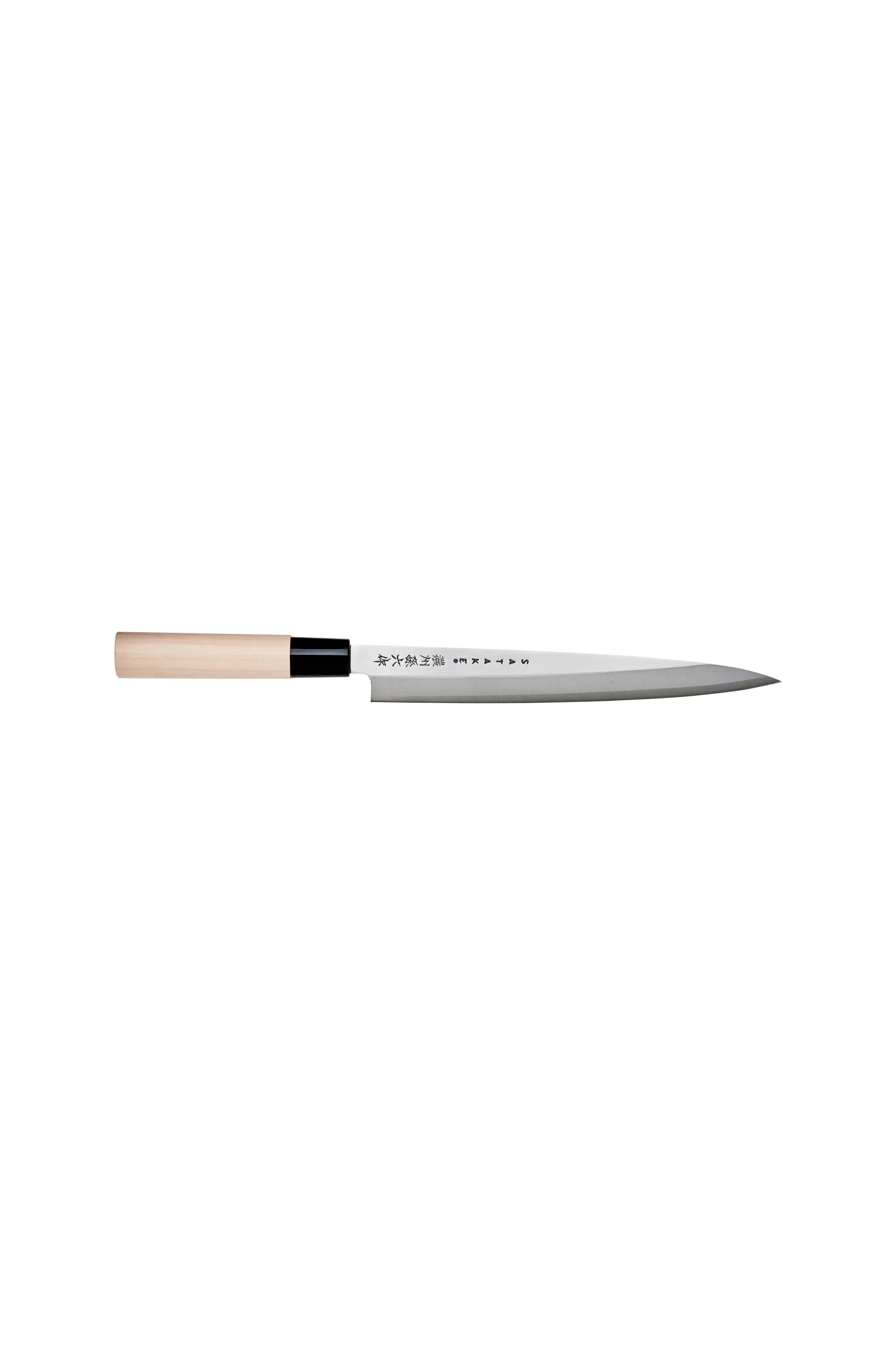 Sashimikniven er typisk japansk. Bladet er enkeltslebet for at være maksimalt skarpt når der skal skæres fisk og kød med præcision. Med denn kniv kan du skive det meste med et enkelt snit. Alt sammen for at bevare kødets sjæl ifølge den japanske tradition.
