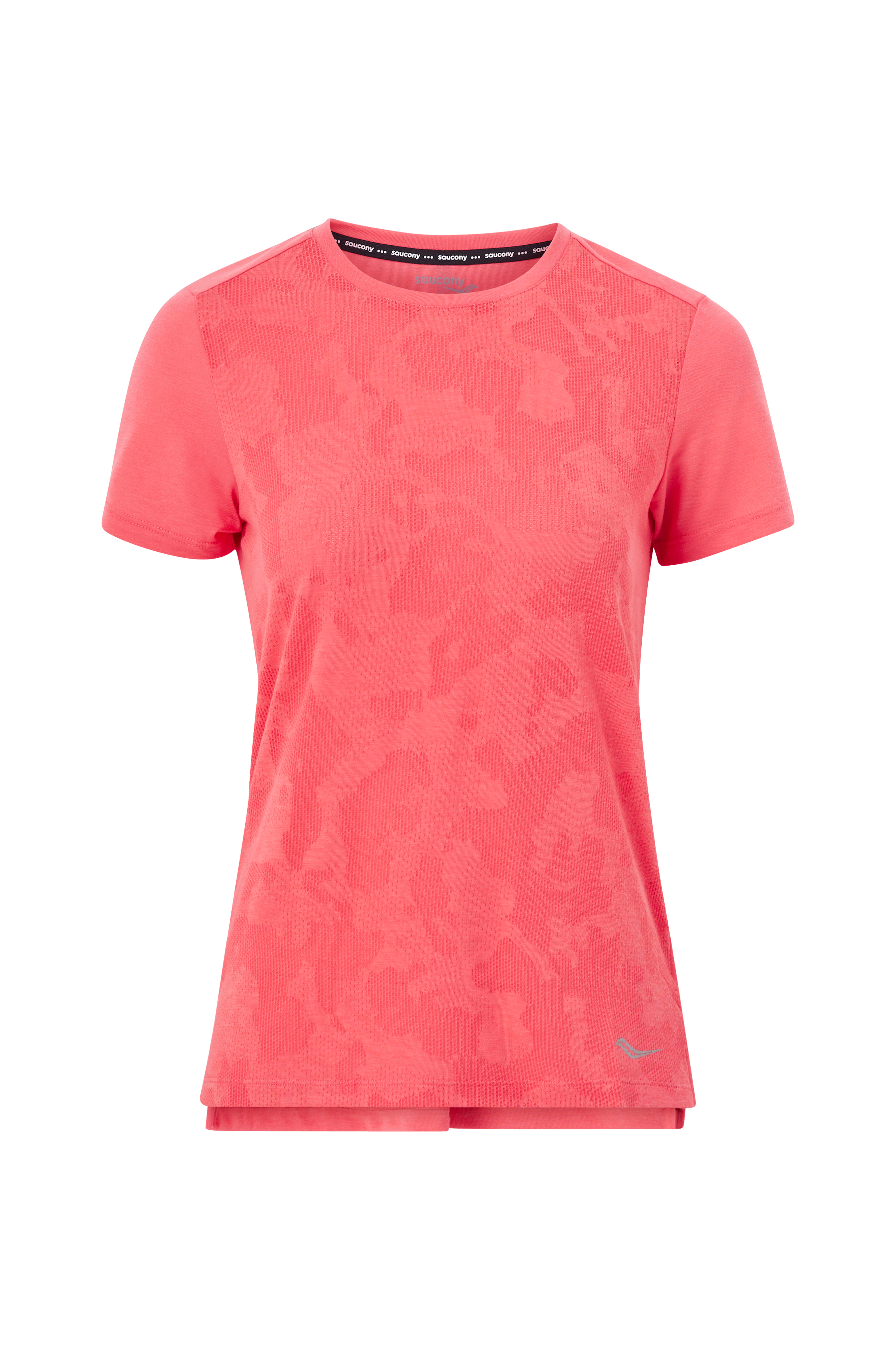 Løbetop i blød, let jersey med merinould. Jacquardmønstret forside. Rund halsudskæring med ribkant. Sideslids forneden og noget længere bagpå. Refleksdetaljer.