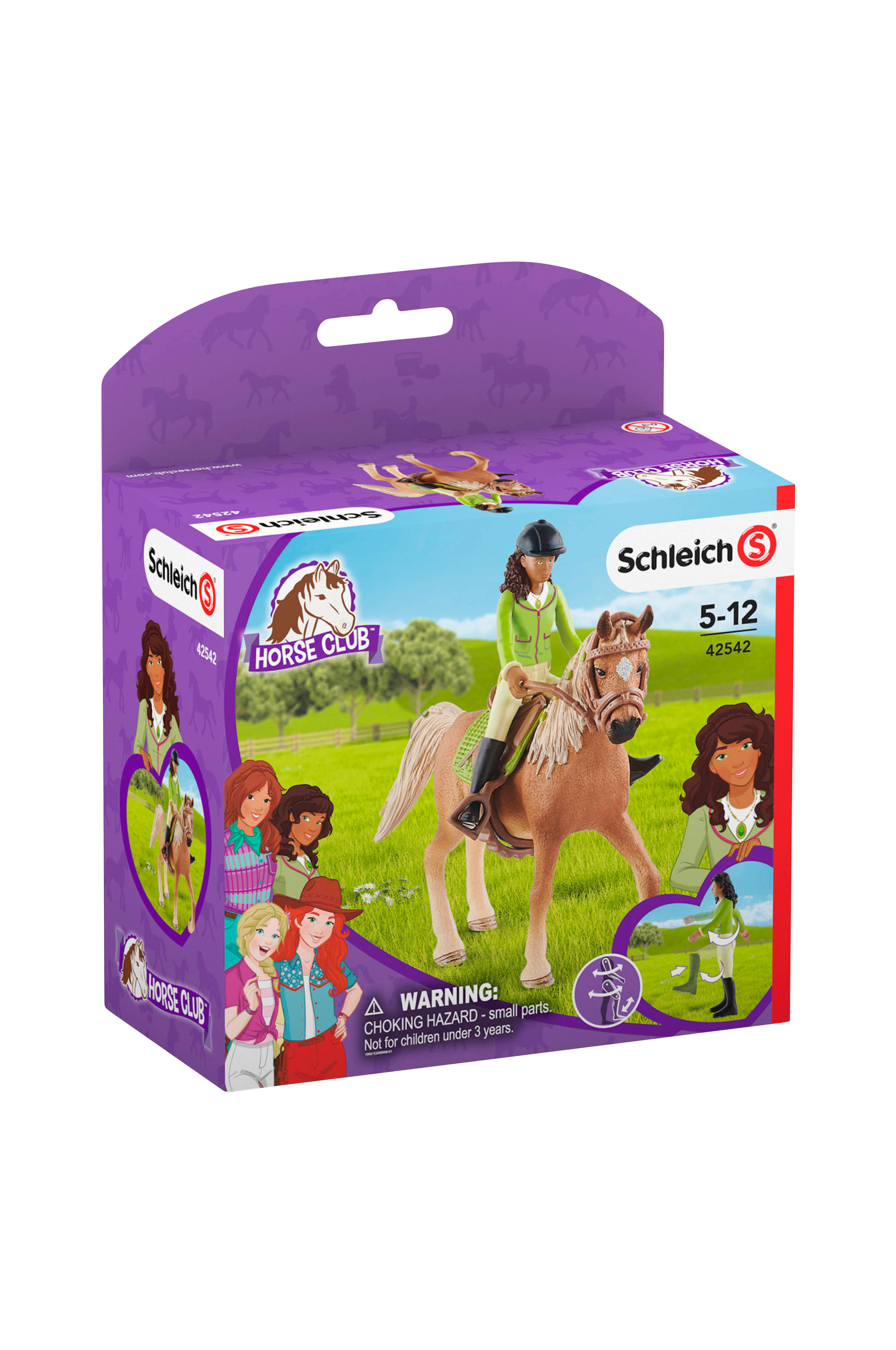 Sarah & Mystery fra Schleich® Horse Club er uadskillelige. Når Sarah galopperer hen over markerne på sin araberhoppe, og de sammen vader gennem bække eller nyder en skovtur i fællesskab, er de to som hånd og handske. Pigefigur Sarah har en ridehjelm på hovedet, er fuldt bevægelig og kan således tøjre hesten, lægge seletøj op og sidde på sadlen, mens hun rider. Med sit smukke gule armbånd signaliserer Sarah, at hun er medlem af Horse Club.