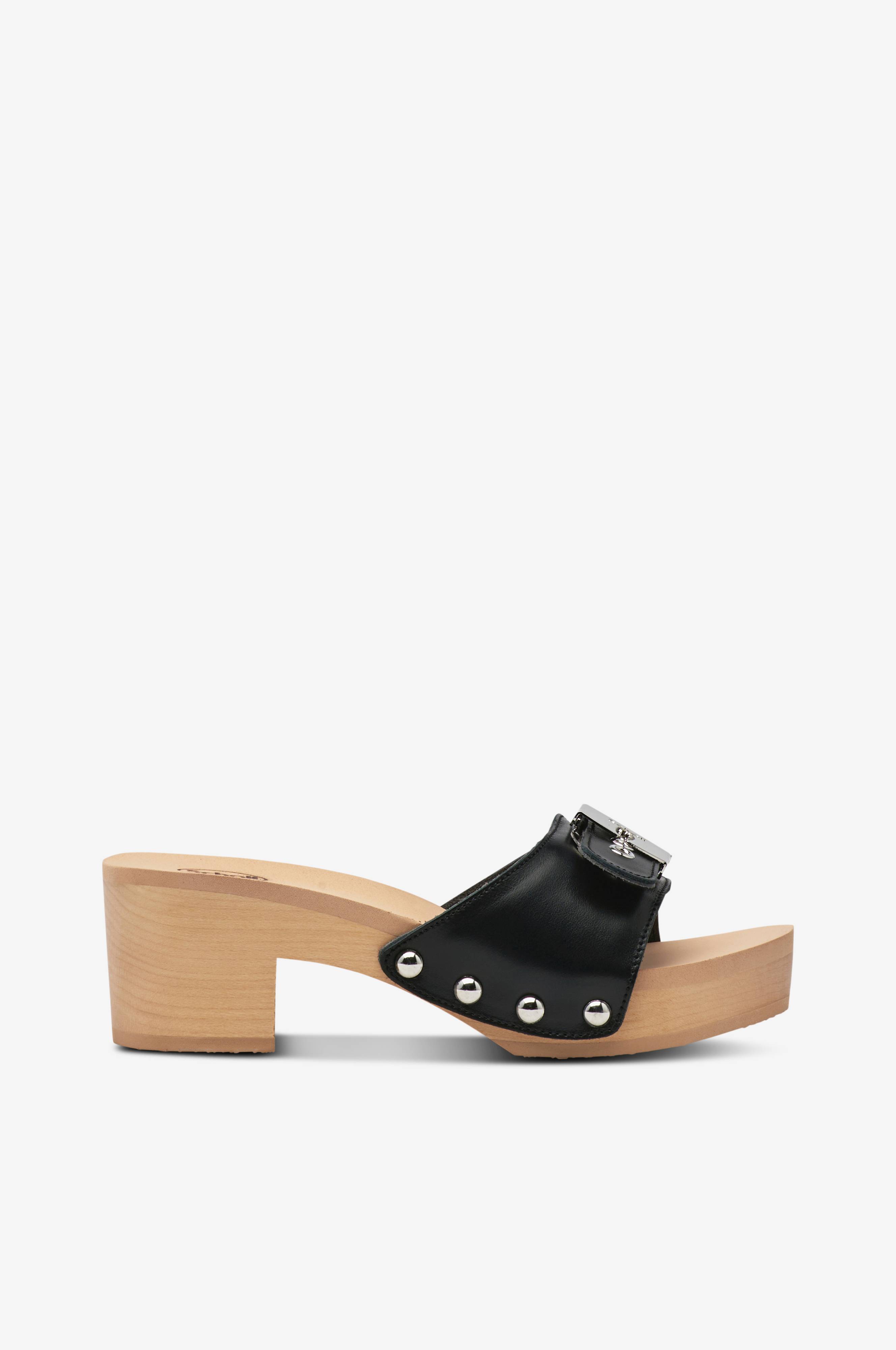 • Sandaler med hæl i træ med blokhæl• Justérbar rem i læder med metallukning• Fodseng i EVA• EVA ydersål• Hælhøjde: 6,5 cm