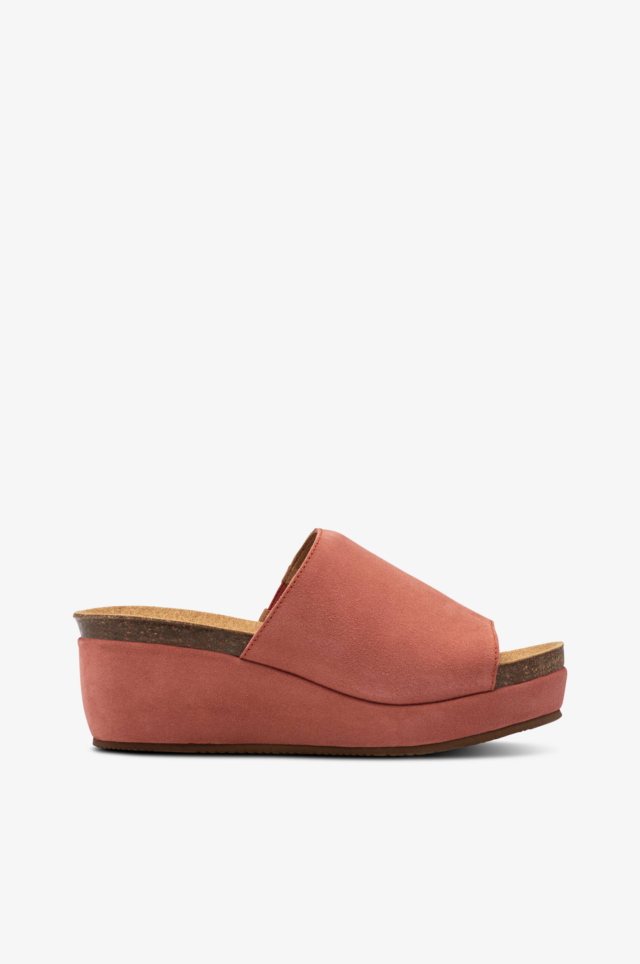 Smidige slip on-sandaler med ruskindsbeklædt kilehæl. Fodsengen er udformet med Scholls unikke Bioprint-teknologi. Med kork og naturgummi sikrer det, at foden får lov til at bevæge sig naturligt, mens den holdes i den rigtige position. Derudover har fodsengen ruskindsbelægning for dejlig blød komfort mod foden. Hælhøjde ca. 6 cm.