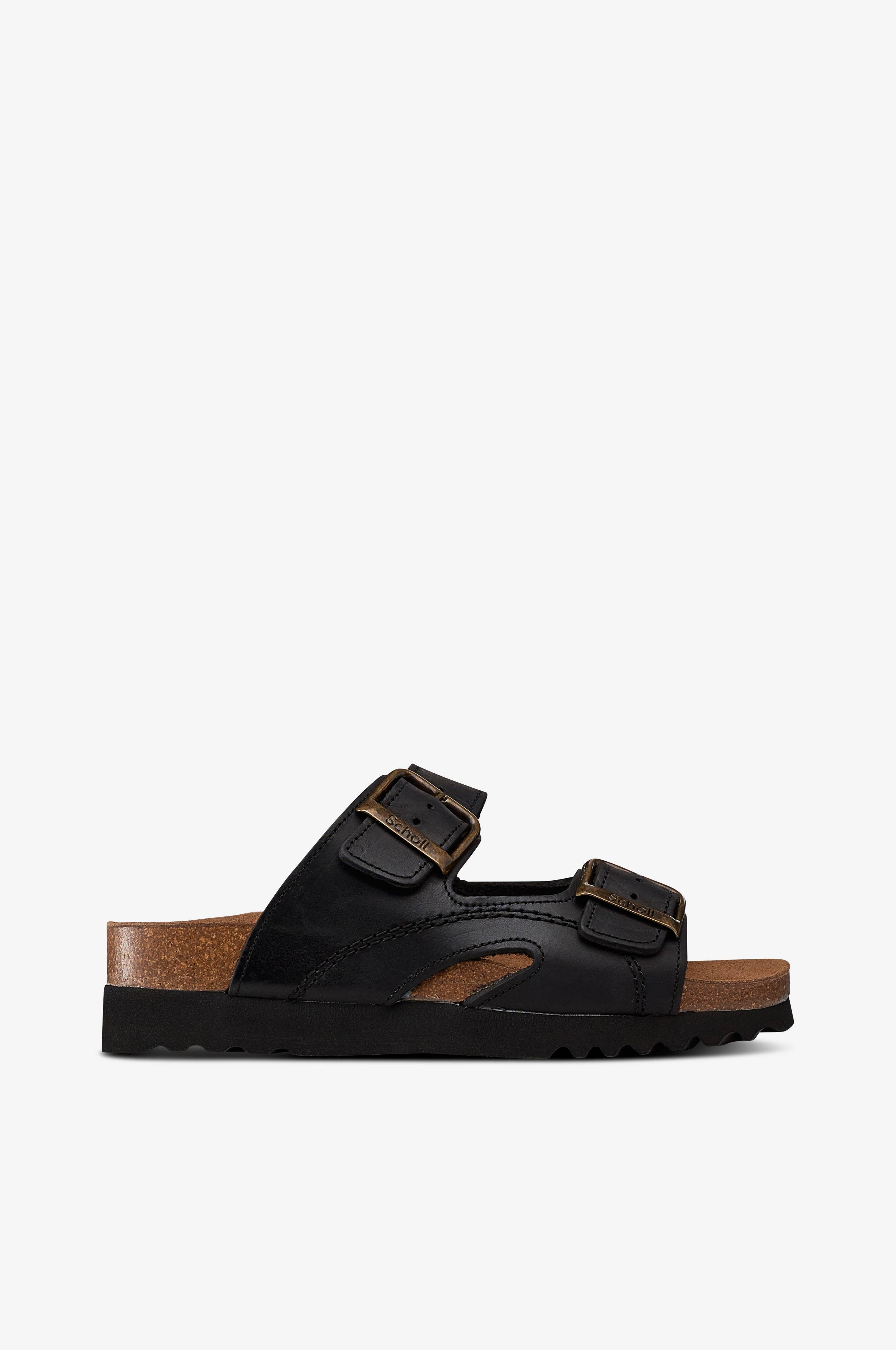 Sandaler Moldava Wedge AD fra Scholl med anatomisk fodseng i kork og gummi fremstillet med Scholls unikke Bioprint-teknologi, som bidrager til en naturlig gang. Fodsengen er fleksibel og har en høj svang og stabil hælform som holder foden på plads og giver en jævn vægtfordeling. Justerbare remme i olieret læder med blødt for. Sålhøjde bag (kork + ydersål) 4,5 cm.