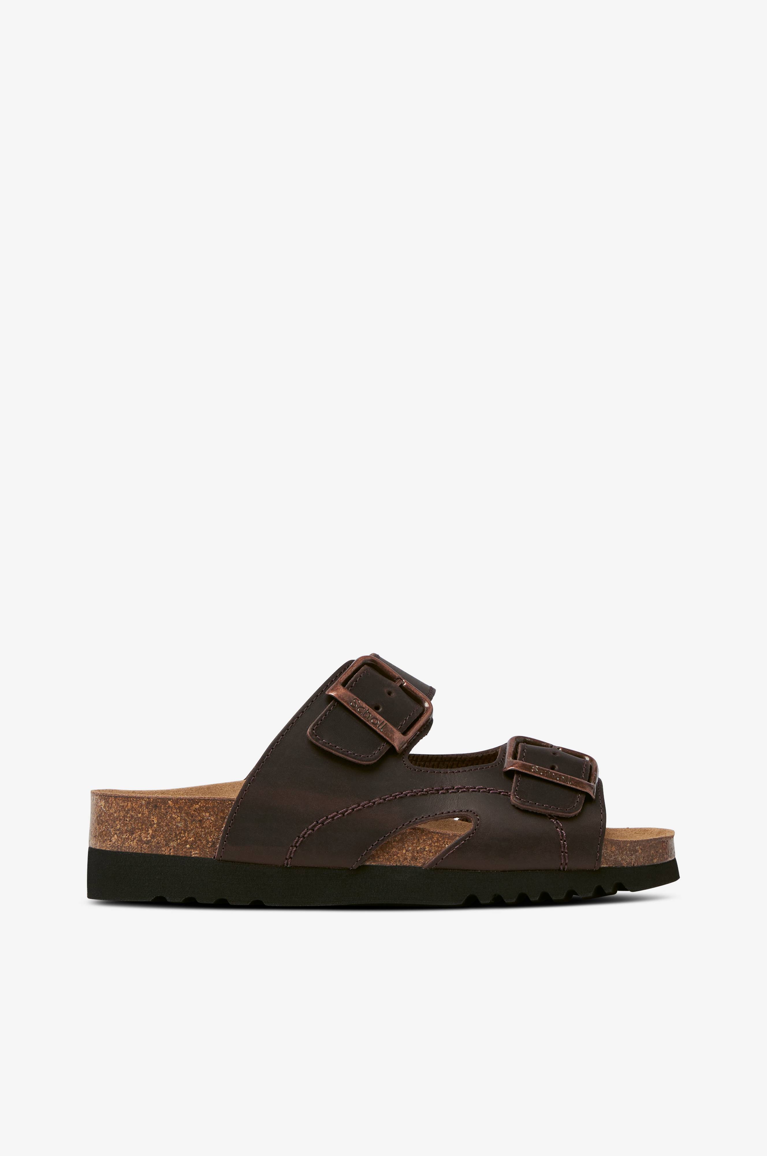 Sandaler med anatomisk fodseng i kork og gummi fremstillet med Scholls unikke Bioprint Adapta-teknologi, som bidrager til en naturlig gang. Fodsengen er fleksibel og har en høj svang og stabil hælform som holder foden på plads og giver en jævn vægtfordeling. Justerbare remme i olieret læder med blødt for. Sålhøjde bag (kork + ydersål) 4,5 cm.