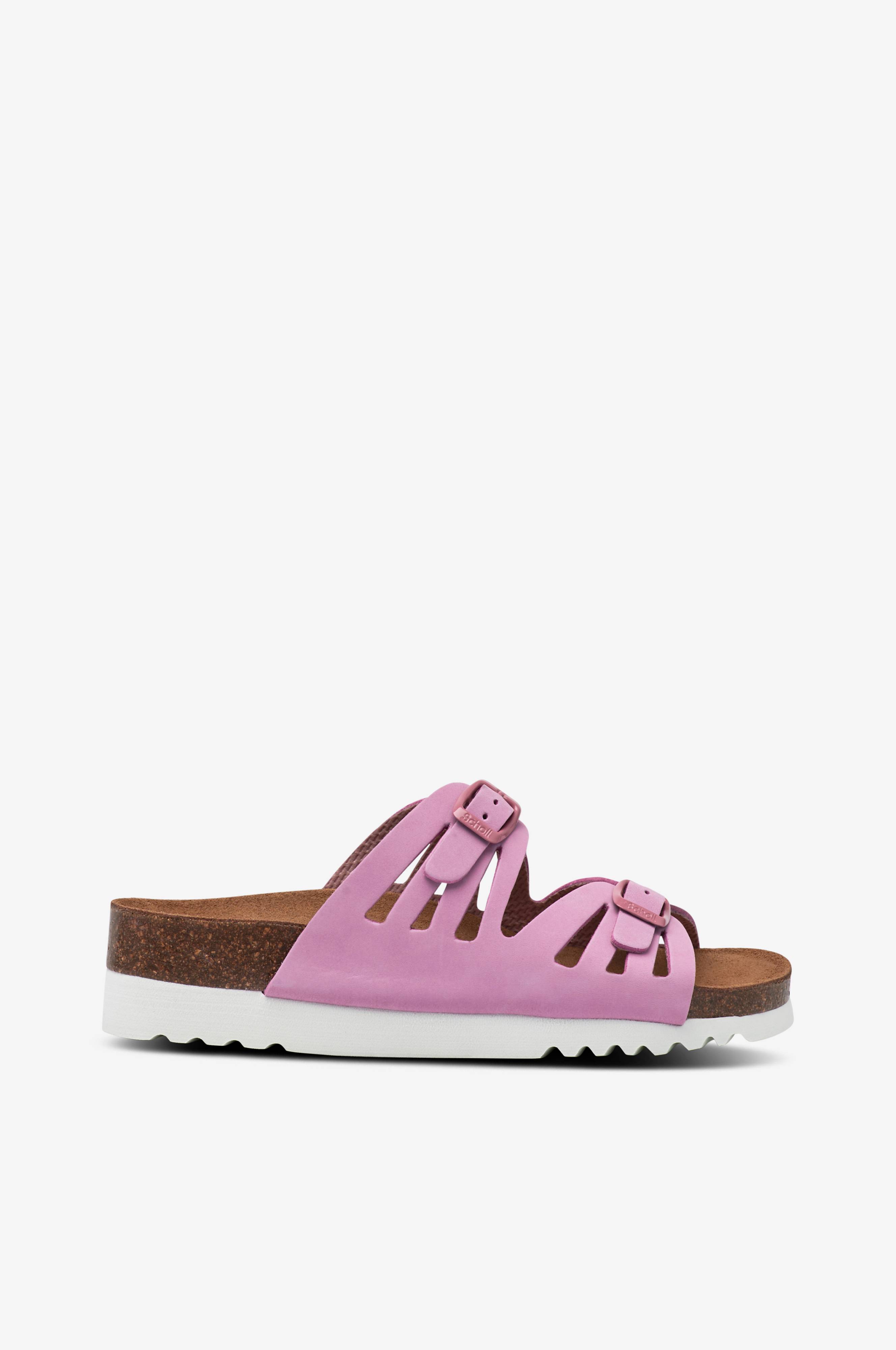 • Øvredel i læder• To justérbare remme med metallukninger• Anatomisk fodseng i ruskindsbeklædt kork fremstillet med Scholls unikke Bioprint Adapta-teknologi• Opbygget svangstøtte og anatomiske flexzoner• Sålhøjde: 3,5 cm