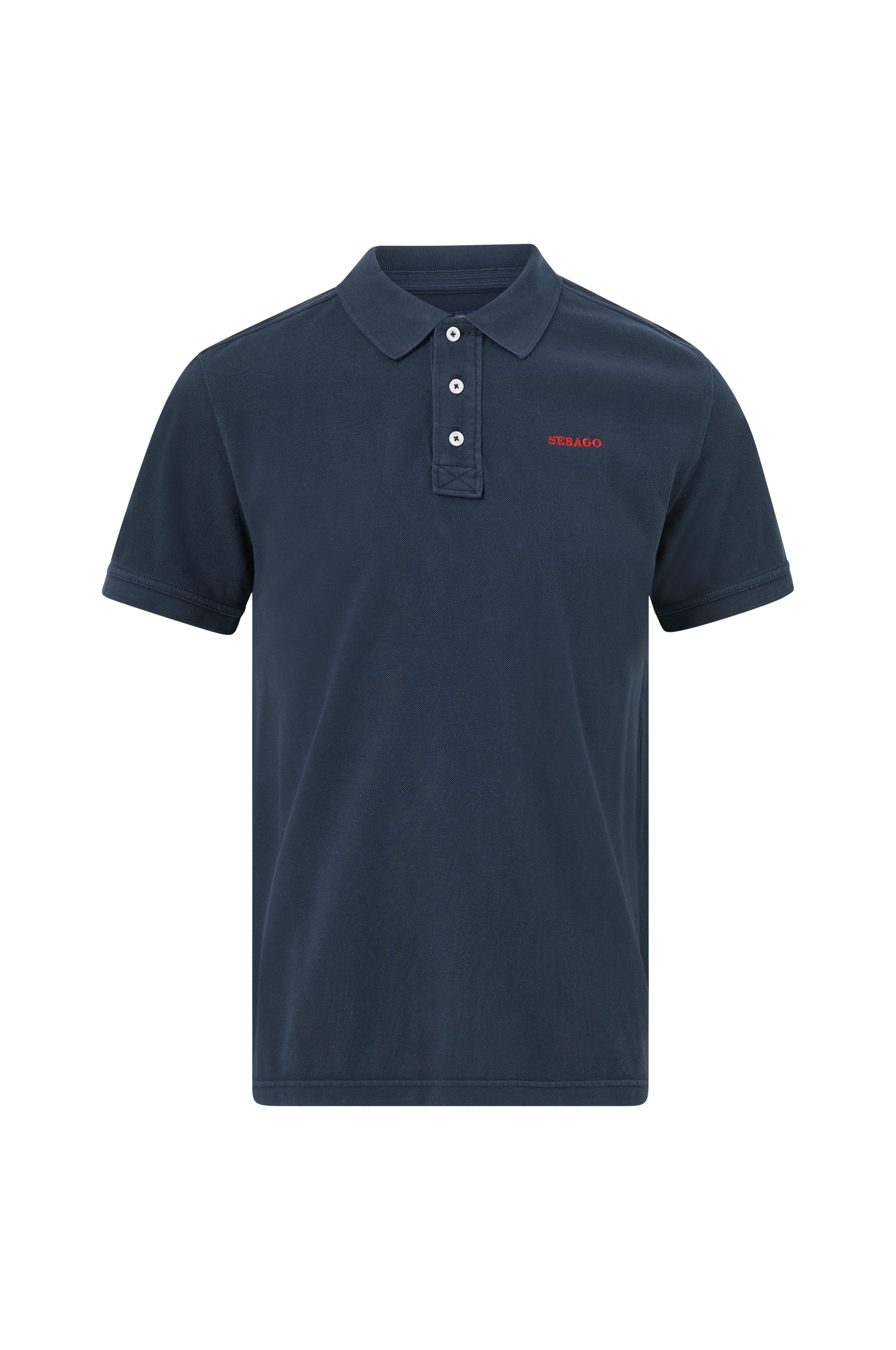 Poloshirt i bomuld som er stykfarvet og vasket, hvilket giver en flot effekt. Diskret Sebago-broderi på venstre side på brystet og broderede detaljer i sidesømmen forneden. Ribkrave og stolpelukning med tre knapper. Ribkanter i ærmekanten. Slids i siderne og noget længere bagpå.