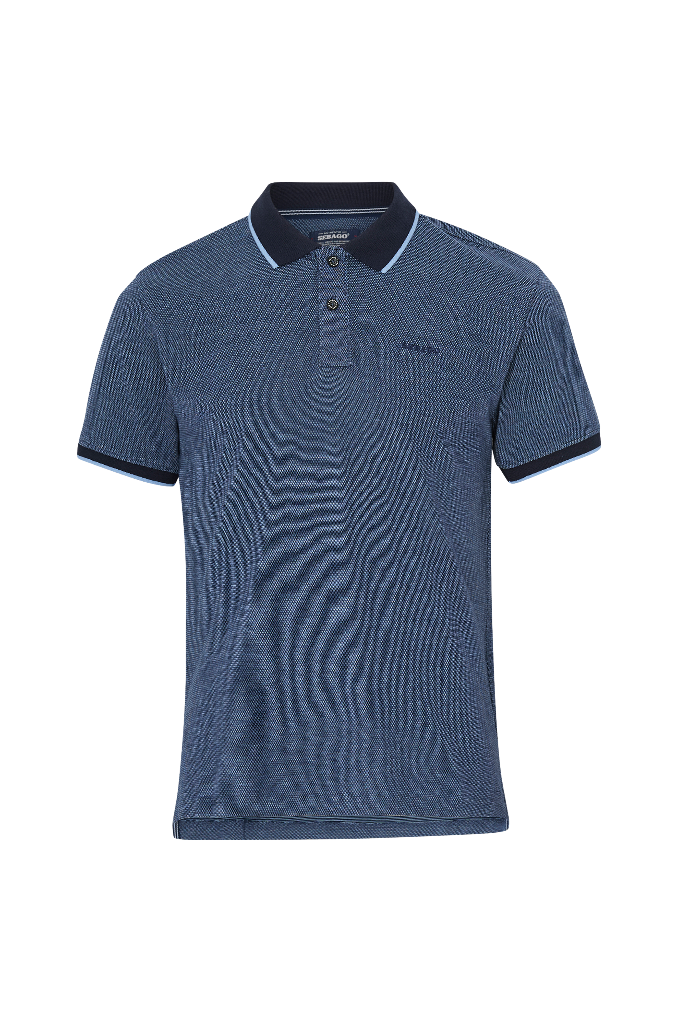 • Lige model med kort slids nede i siderne• Ribstrikket krave• Kort knaplukning foran• Kort ærme med ribstrik ved manchetterne