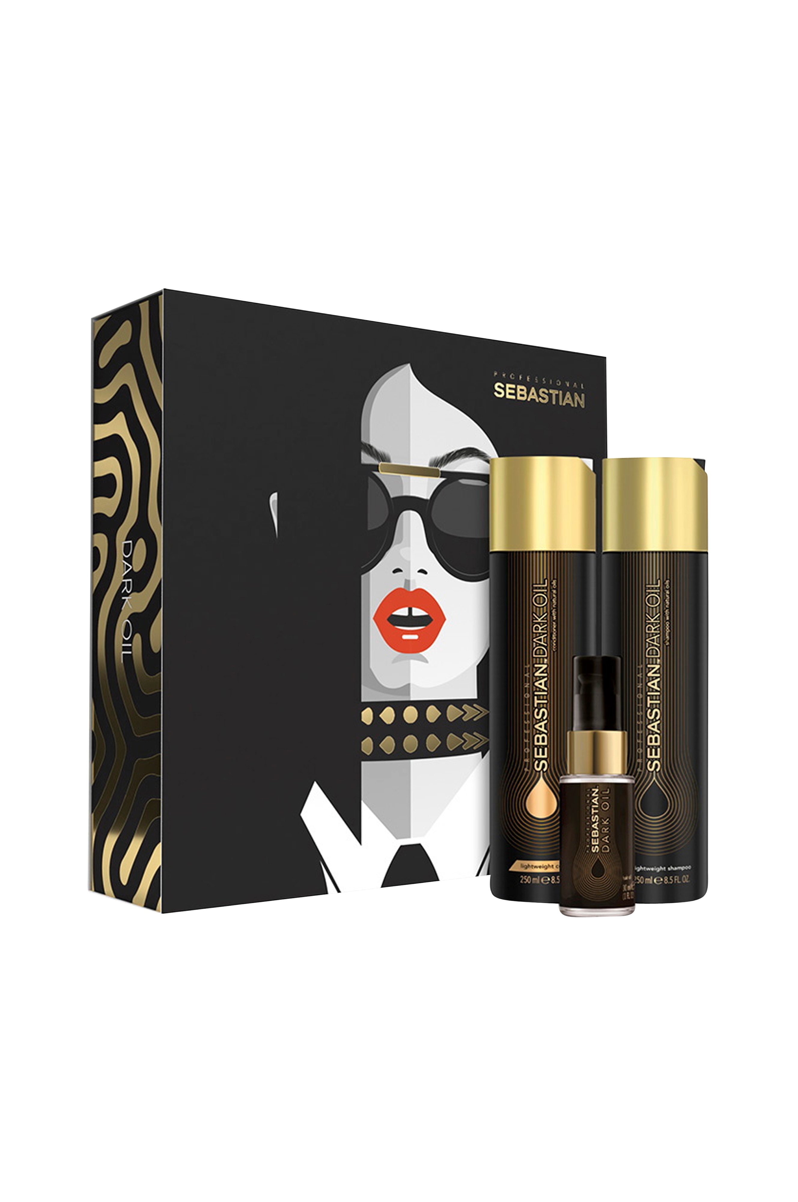 Sebastian Professionals Dark Oil-serie er lette, volumengivende stylingprodukter, der glatter håret og giver en vægtløs glans og finish.