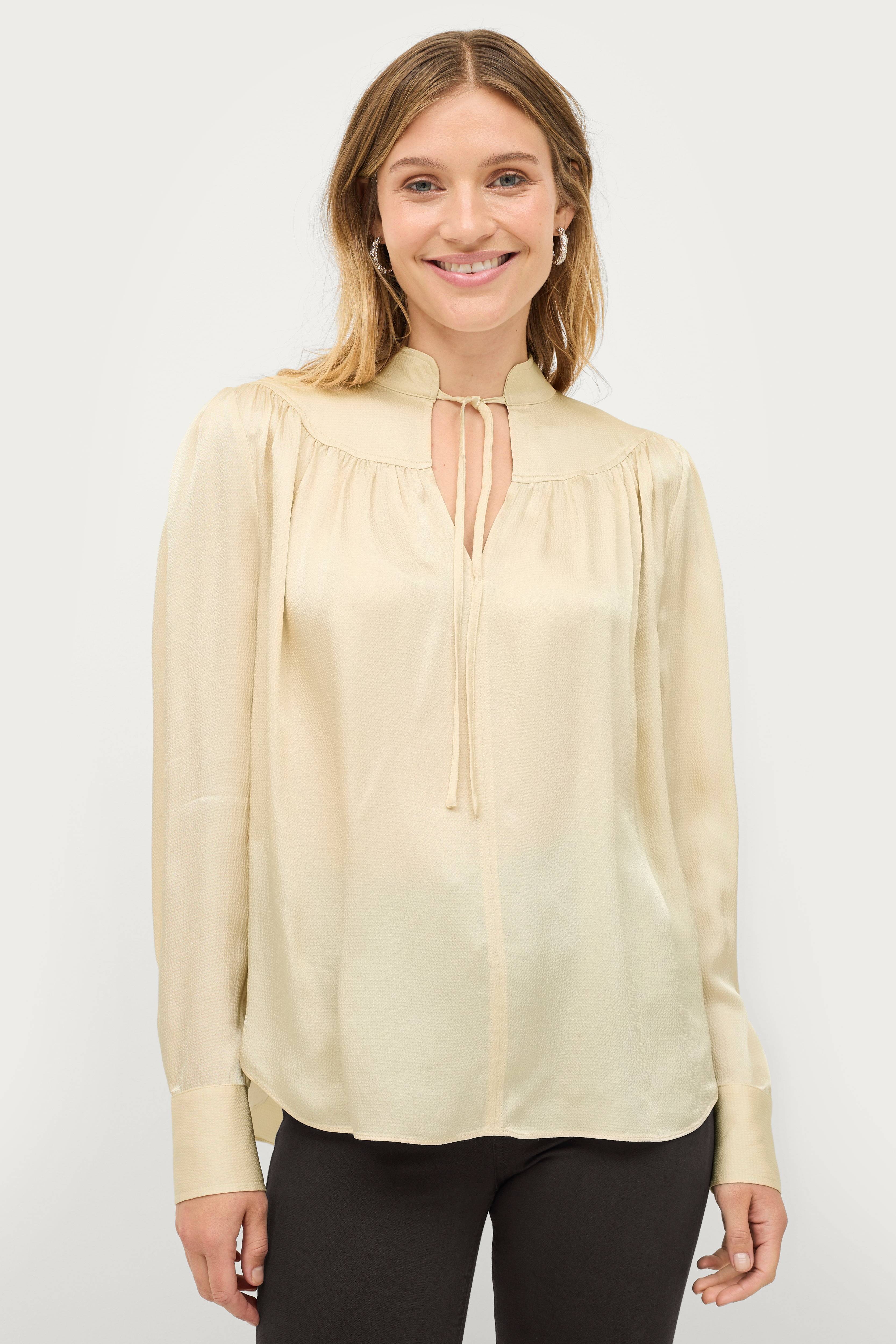 • Lige model• Vævet kvalitet i satin• Slids med bindbart bånd i halsen• Rynket linning hele vejen rundt• Langt ærme med manchet• Afrundet søm
