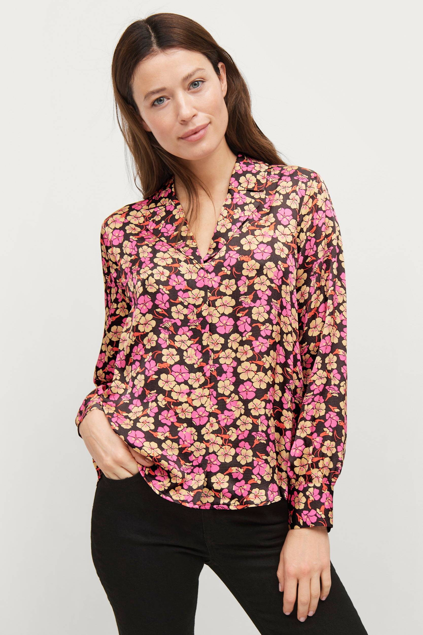 • Bluse i viskose• Løs pasform• Krave med revers• V-formet halsudskæring• Skjult knapstolpe• Langt ærme• Manchet med en knap