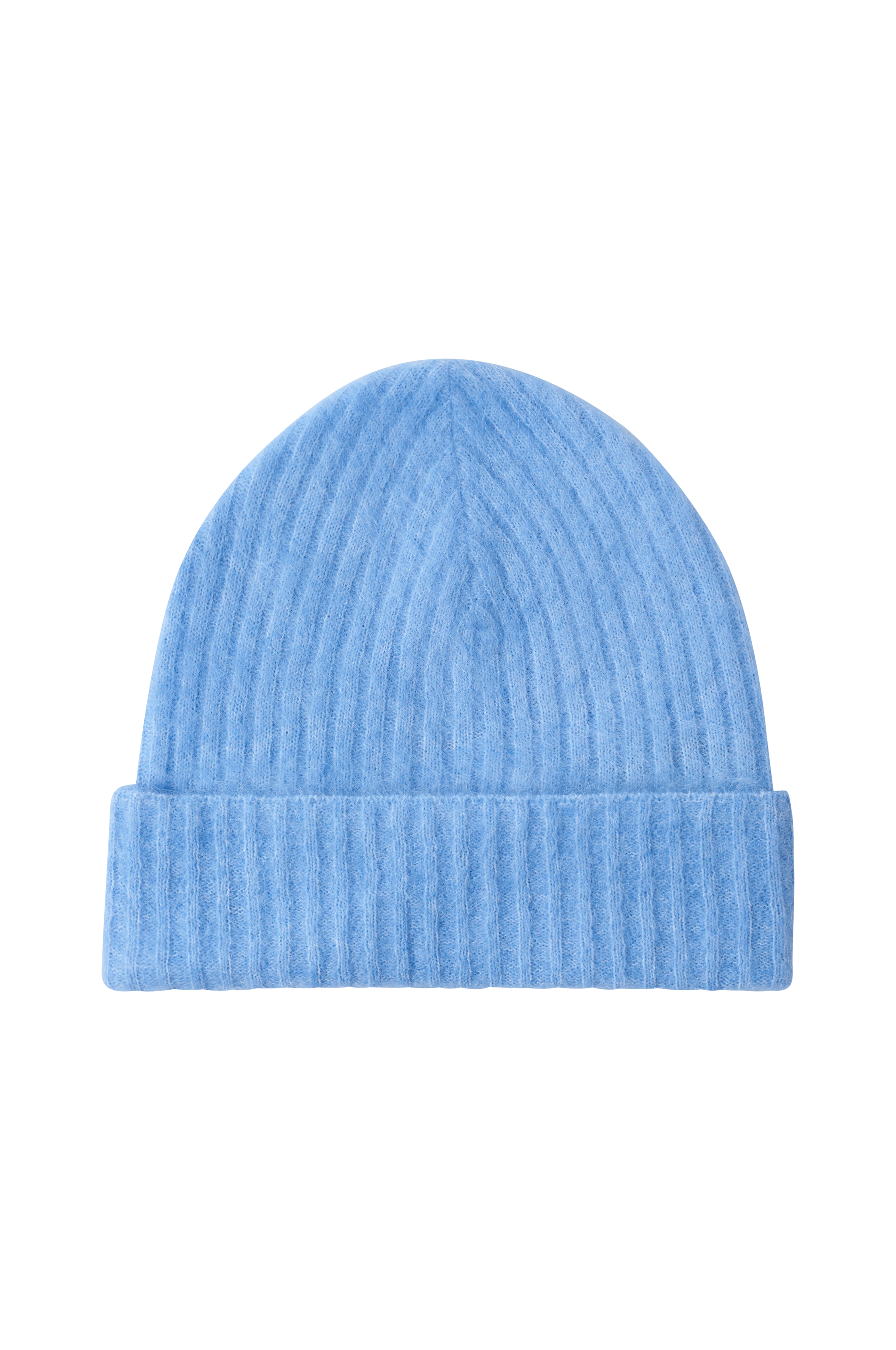 • Strikket hue i blød kvalitet med uld og mohair• Ribbet struktur• Foldet søm