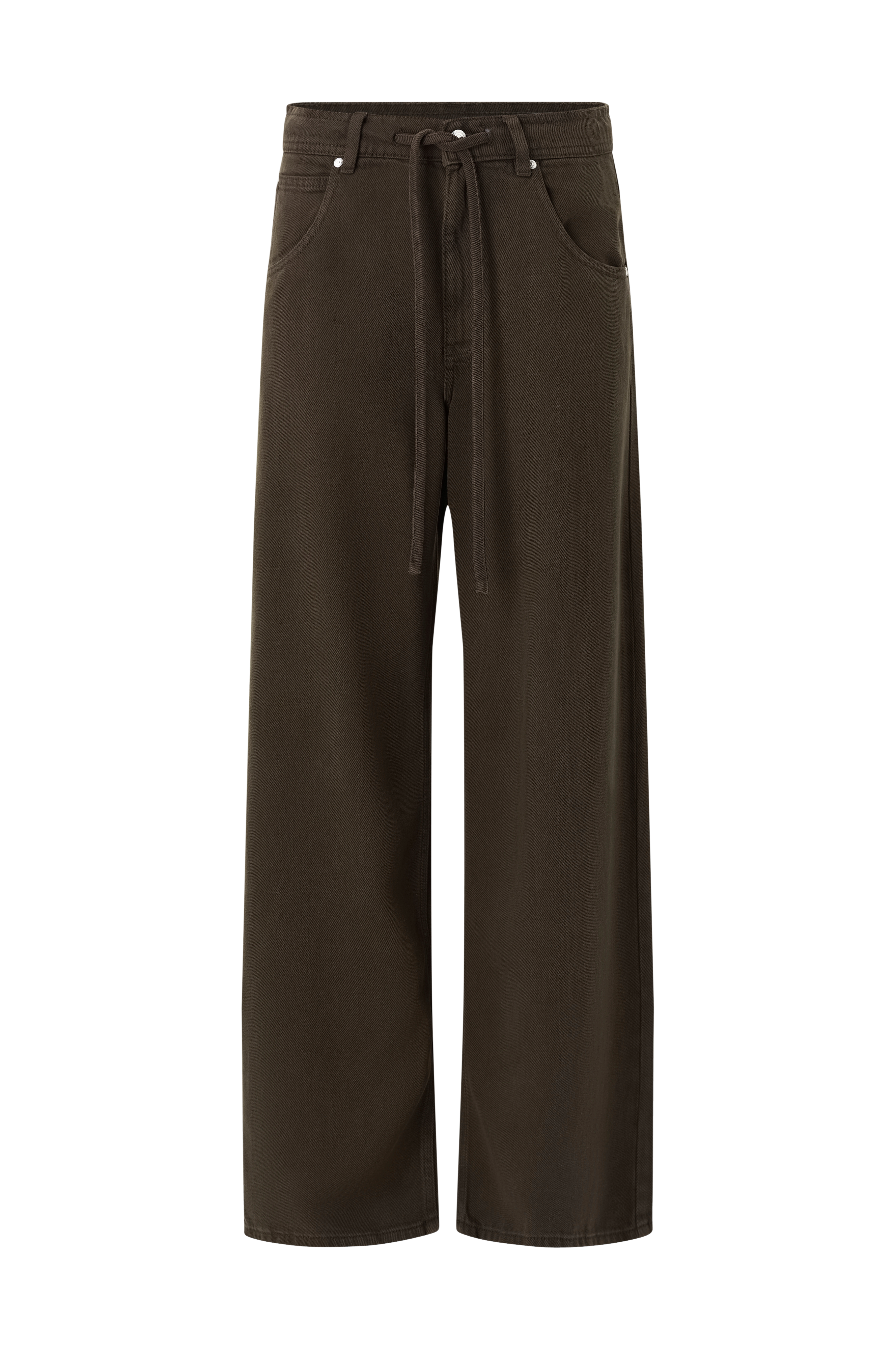 • Tynde, højtaljede jeans i lyocell• Brede ben• Bindebælte ved taljen• Gylp med lynlås• Femlommemodel• Indre benlængde: 79 cm i størrelse S