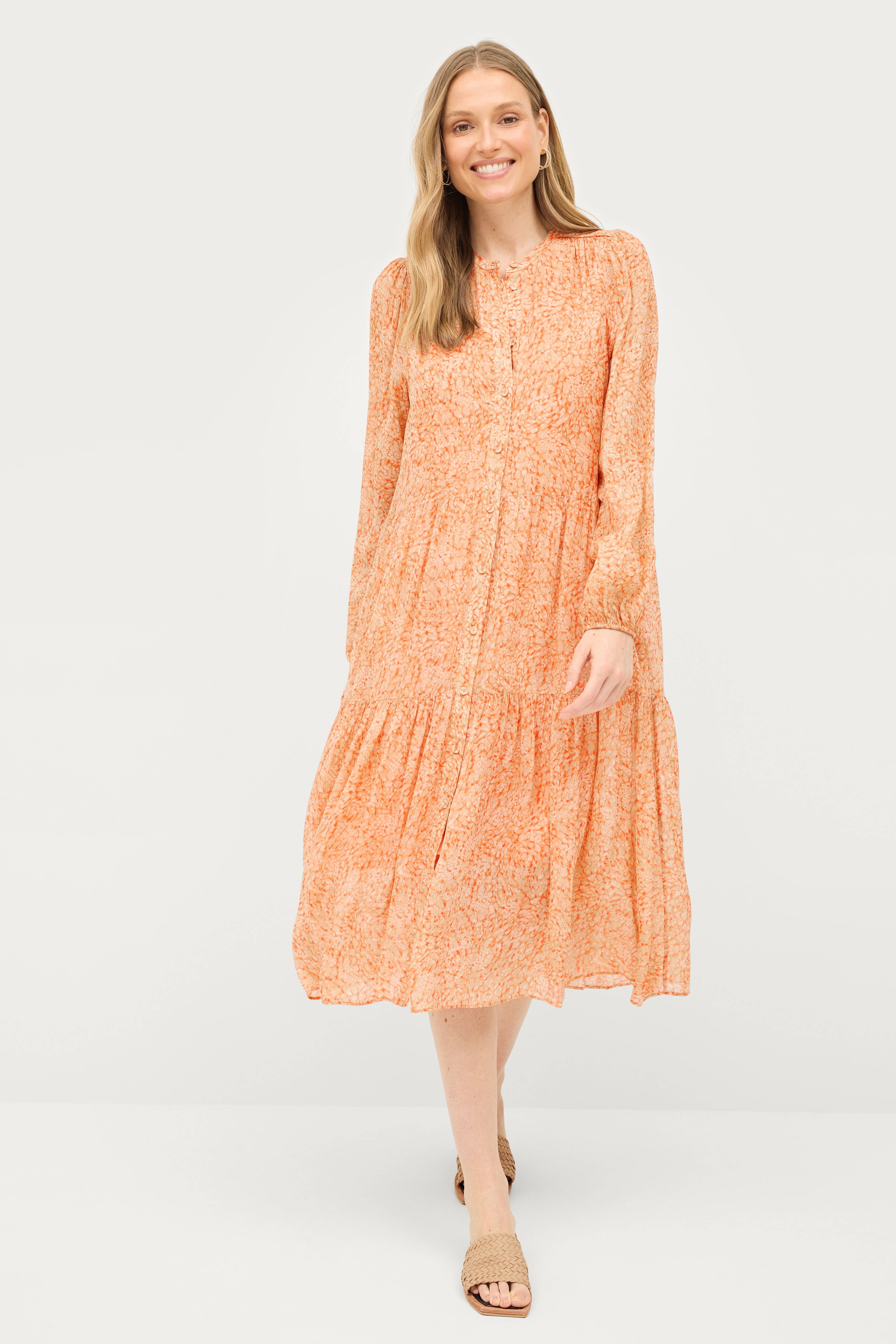 • Foret, let kjole i viskose• Gennemknappet model med stofklædte knapper• Rund halsudskæring• Samling ved skuldrene• Lange ærmer med elastisk bånd ved manchetterne• Længde: 117 cm i størrelse S