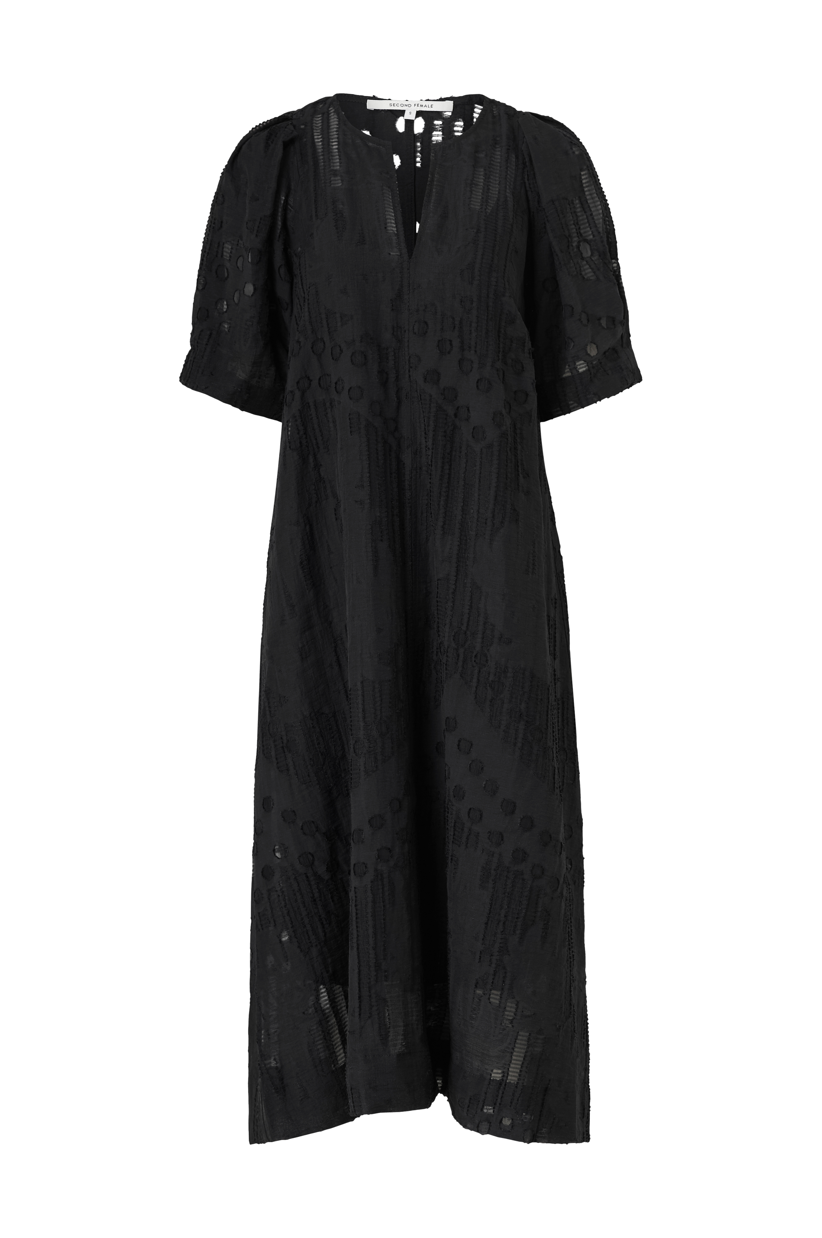 • Model med svaj• Lidt transparent, mønstervævet kvalitet• Rund hals med ventilation foran• Bredt ballonærme• Vævet, udtagelig underkjole med tynde, justérbare skulderstropper• Længde: 123 cm i størrelse S