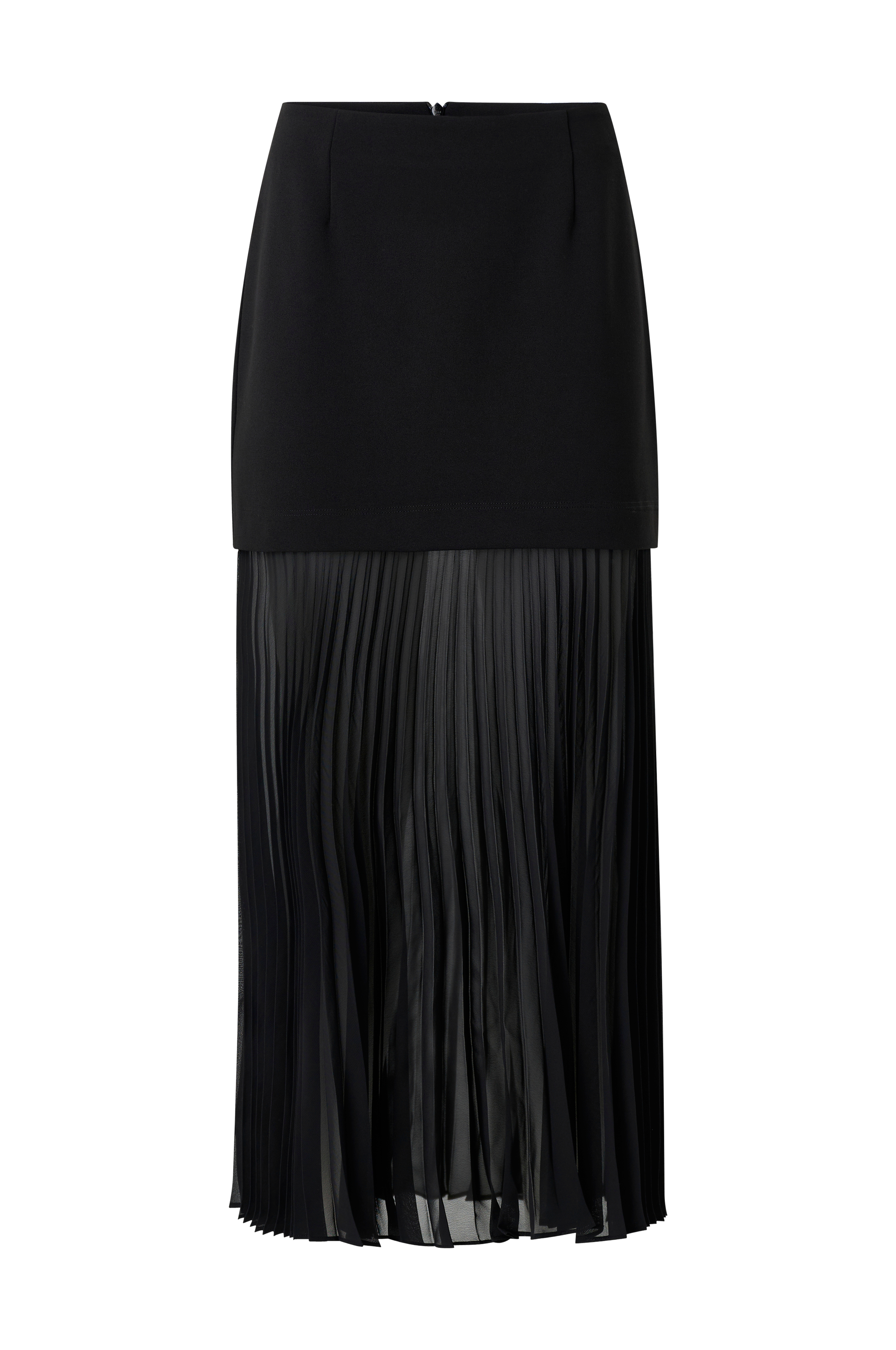 • Lang nederdel med skjult lynlås bagpå ved taljen• Kort, elastisk nederdel med lang, syet, transparent plissé• Længde: 95 cm i størrelse S